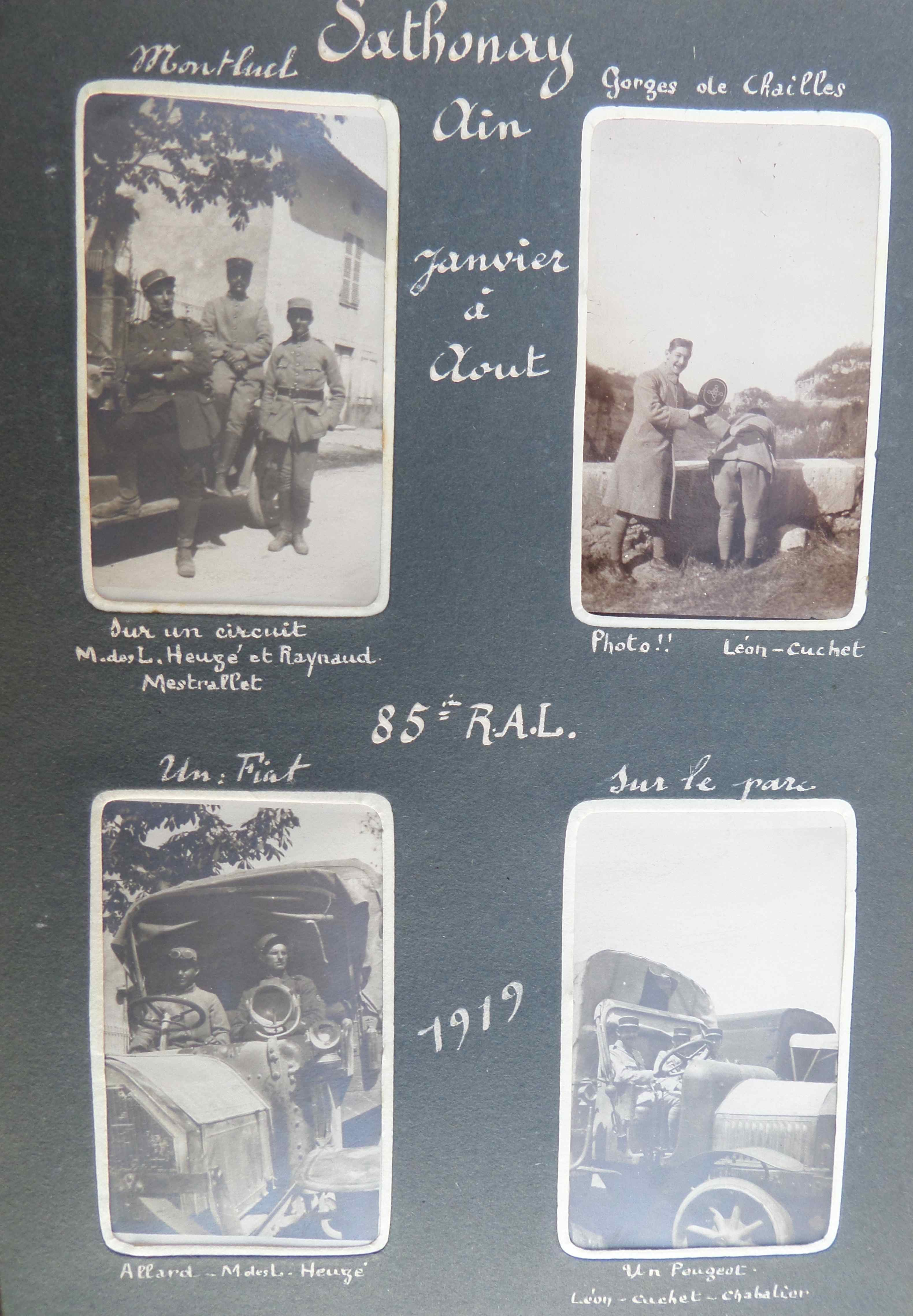 La suite de l’album début 1919 voit notre militaire se retrouver à Sathonay dans l’Ain (banlieue nord de Lyon) avec nombreuses vues de véhicules militaires (camions et automobiles).