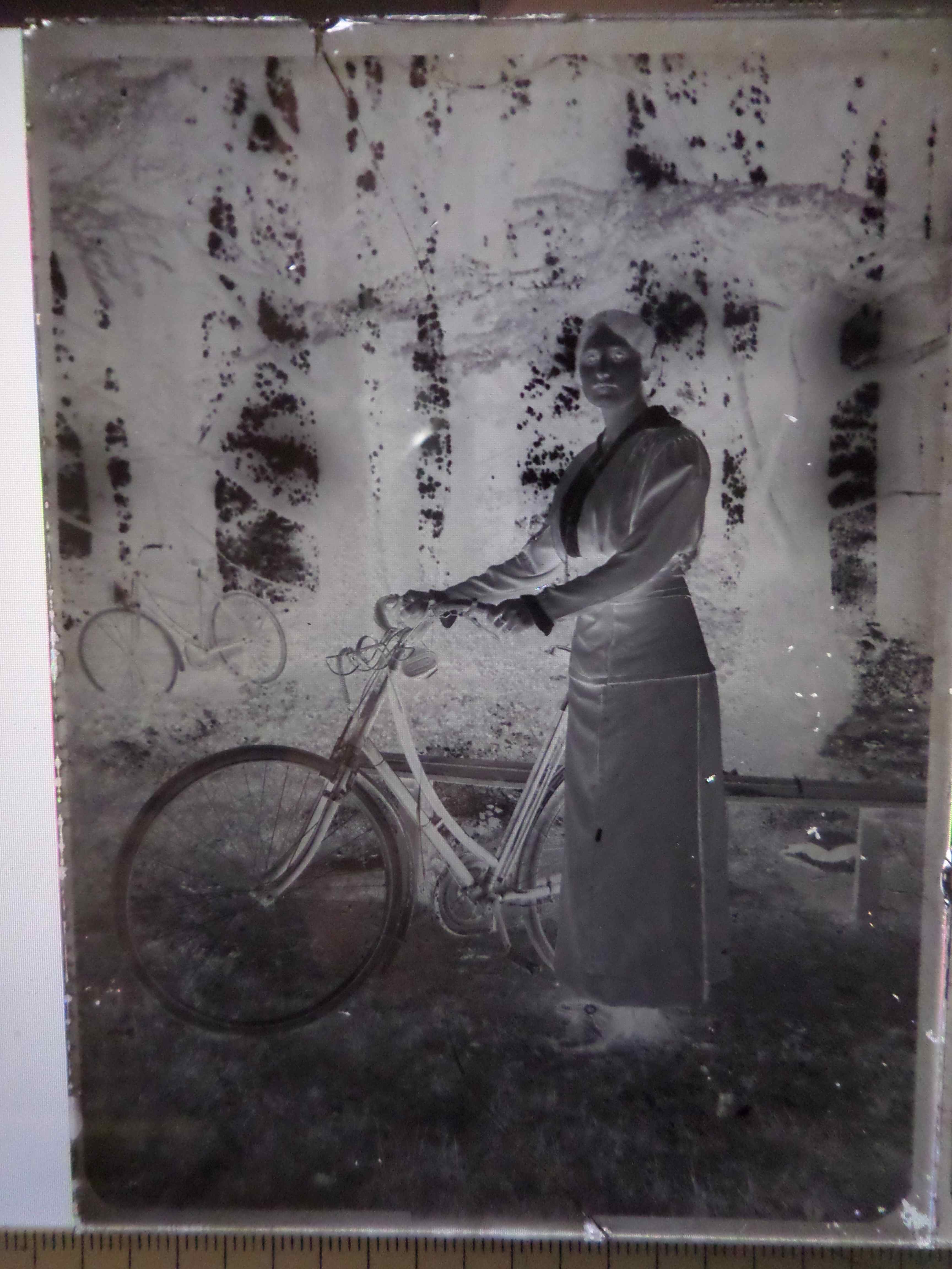 NéGATIF sur VERRE: FEMME au VéLOCIPèDE