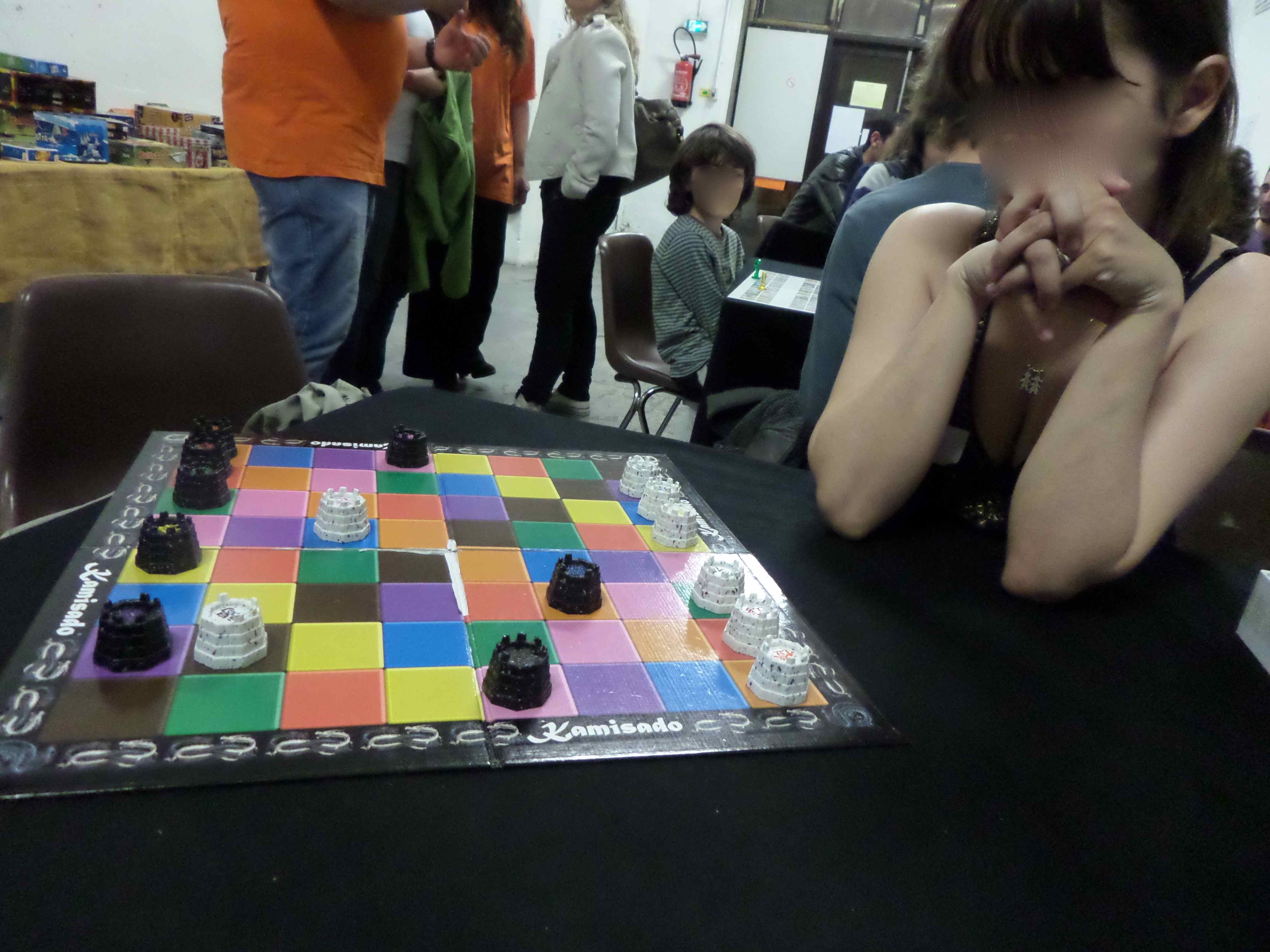 Pour KAMISADO: la joueur déplace son pion et l’arrête sur une case bleue par exemple. L’adversaire devra jouer uniquement son pion bleue. Le but du jeu étant de placer un de ses pions dans la ligne de départ adverse.