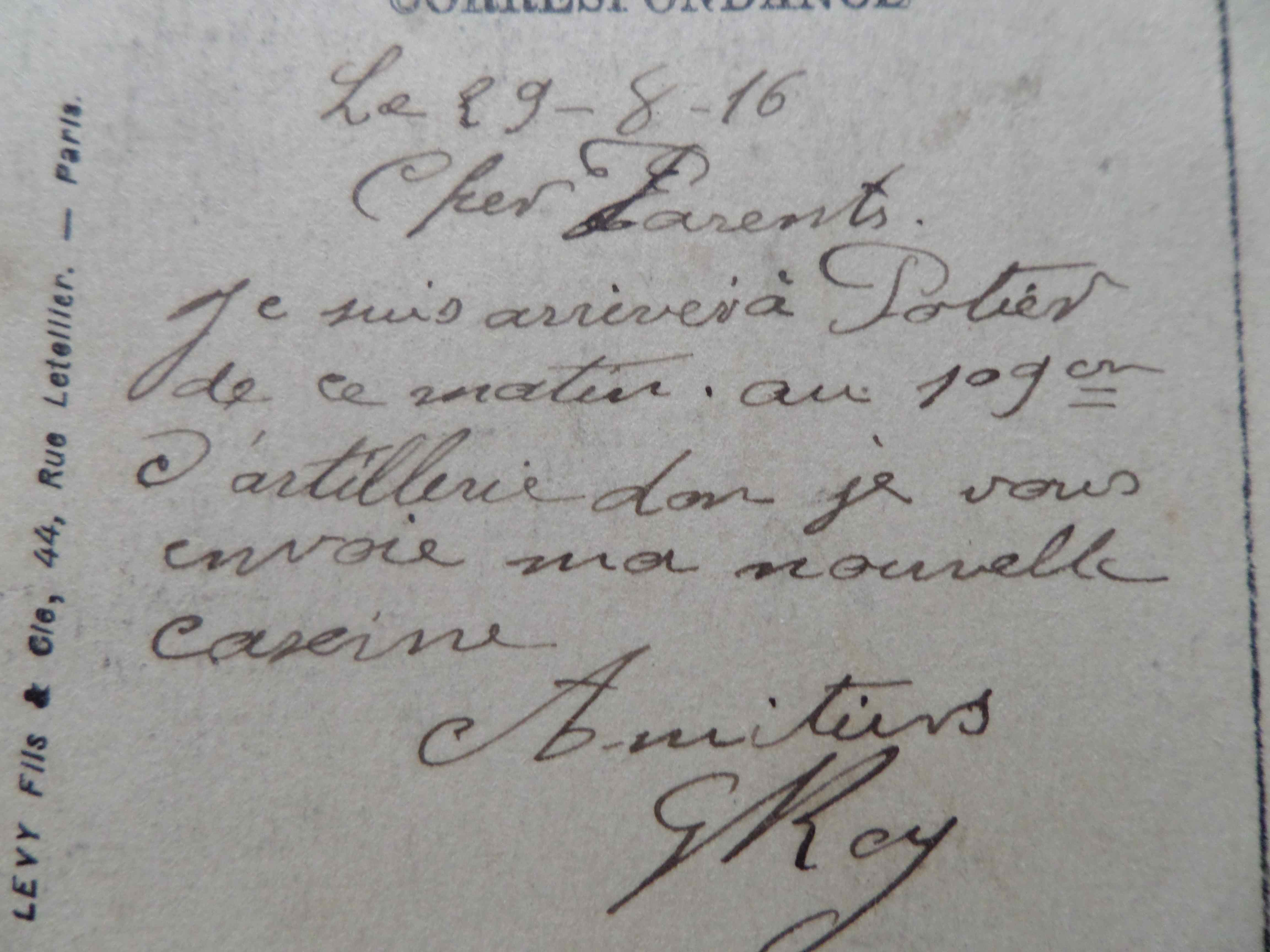 29 août 1916: il vient d’être incorporé au 109ème régiment d’artillerie à Poitiers.