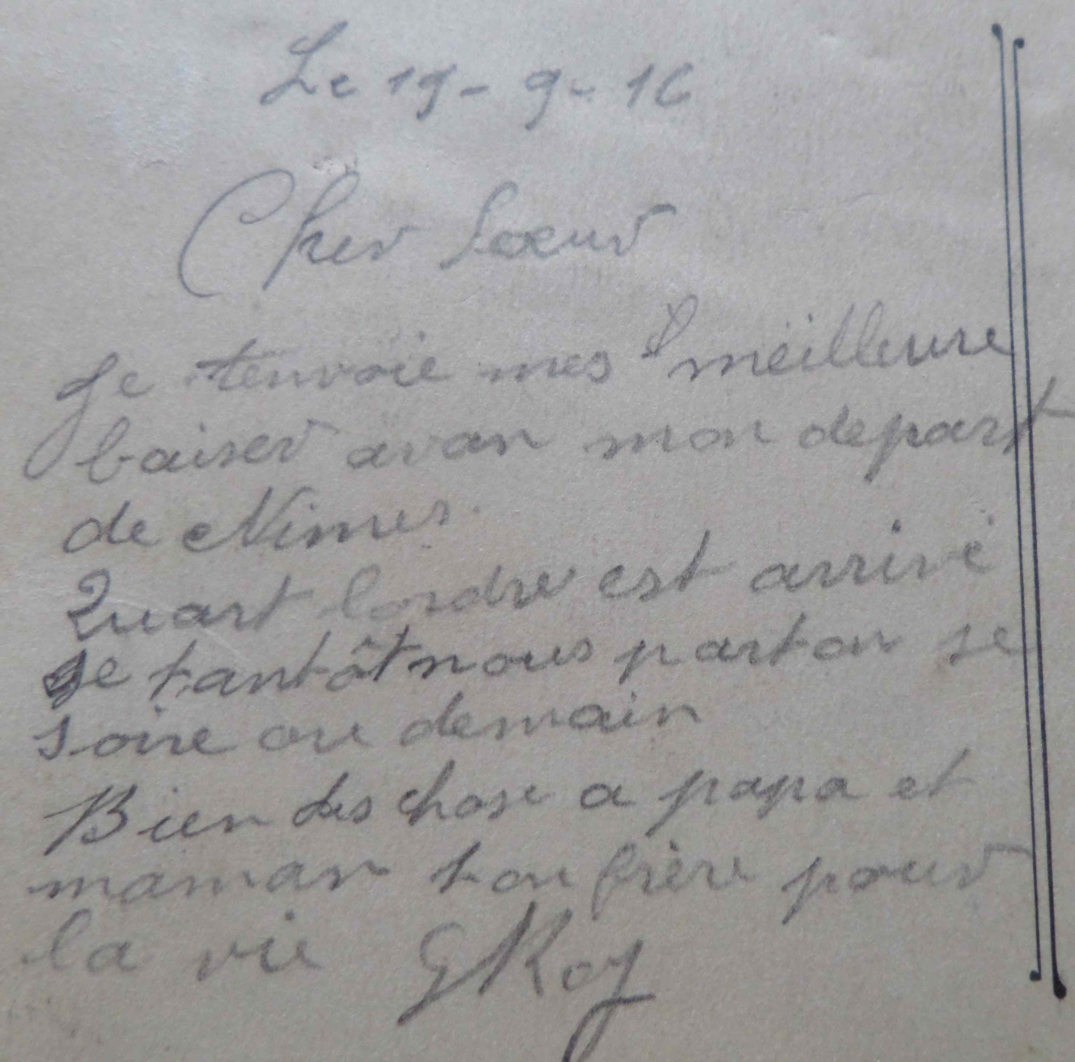 19 septembre 1916: on le retrouve à Nîmes, non pas pour la Féria des Vendanges,mais en route pour une destination plus lointaine.