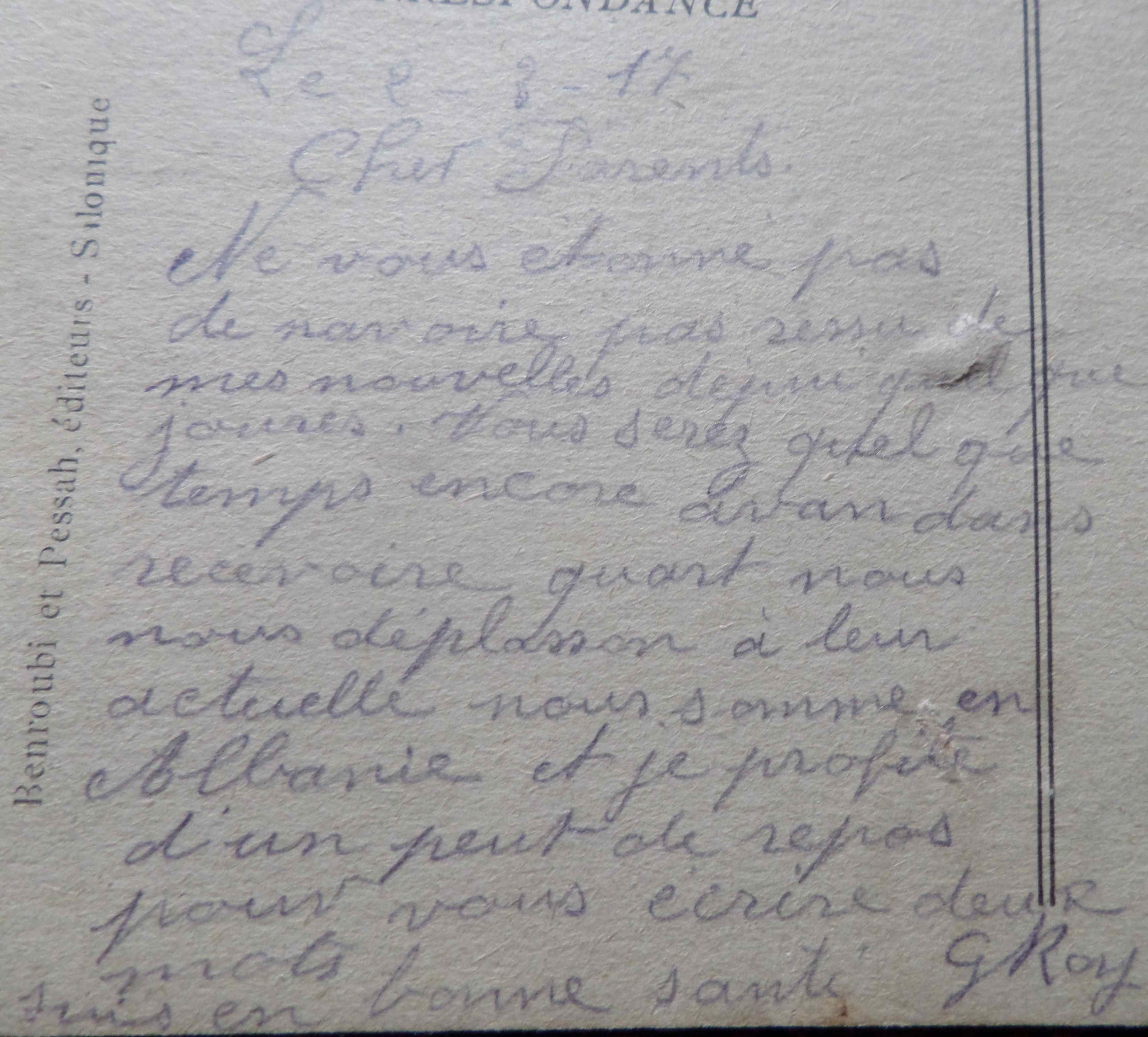 15 et 21 octobre 1916: il envoie des « Bons Baisers d’Orient » à sa petite soeur.