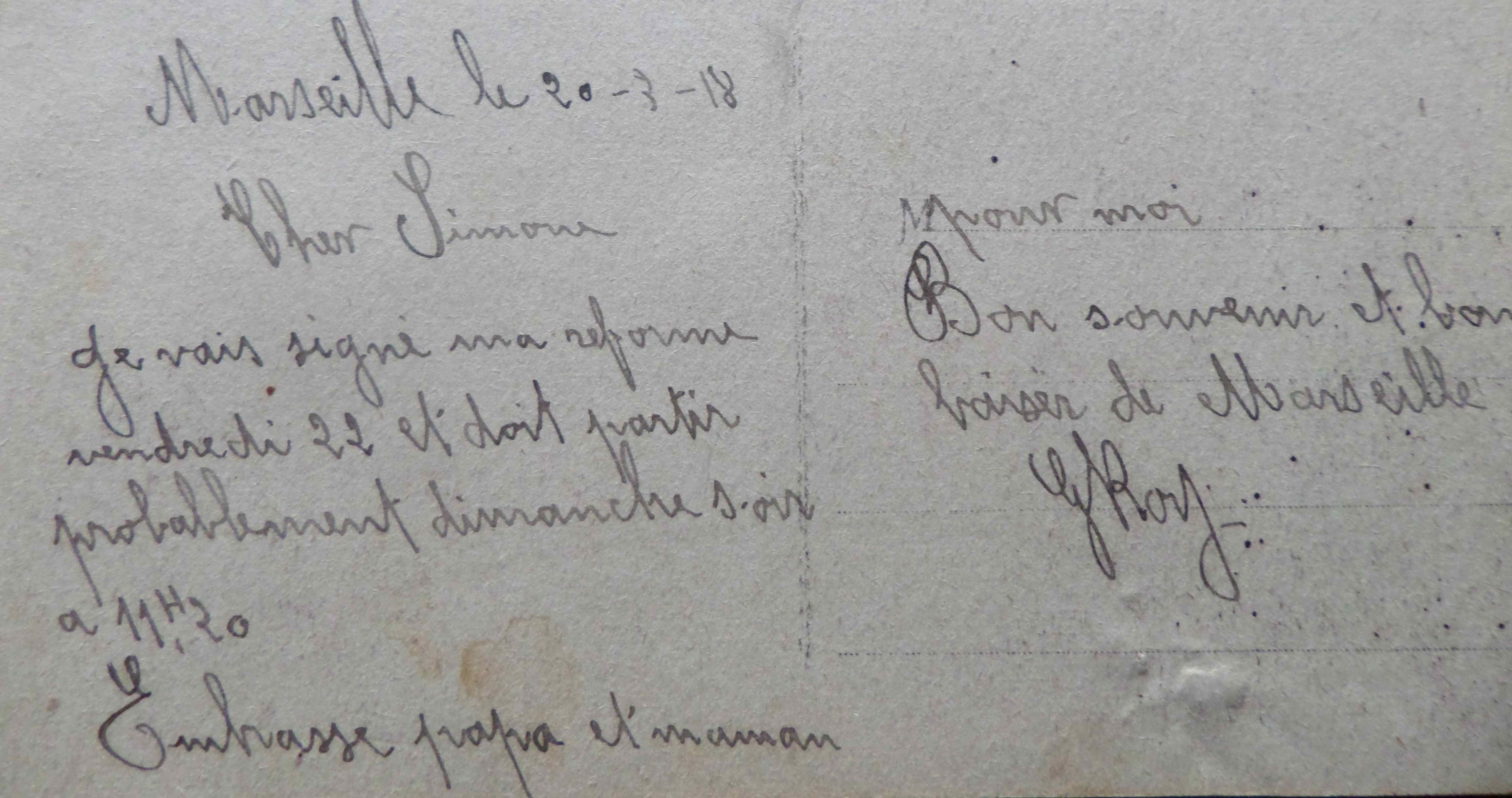Les deux dernières cartes marseillaises sont datées du 8 et 20 mars 1918.