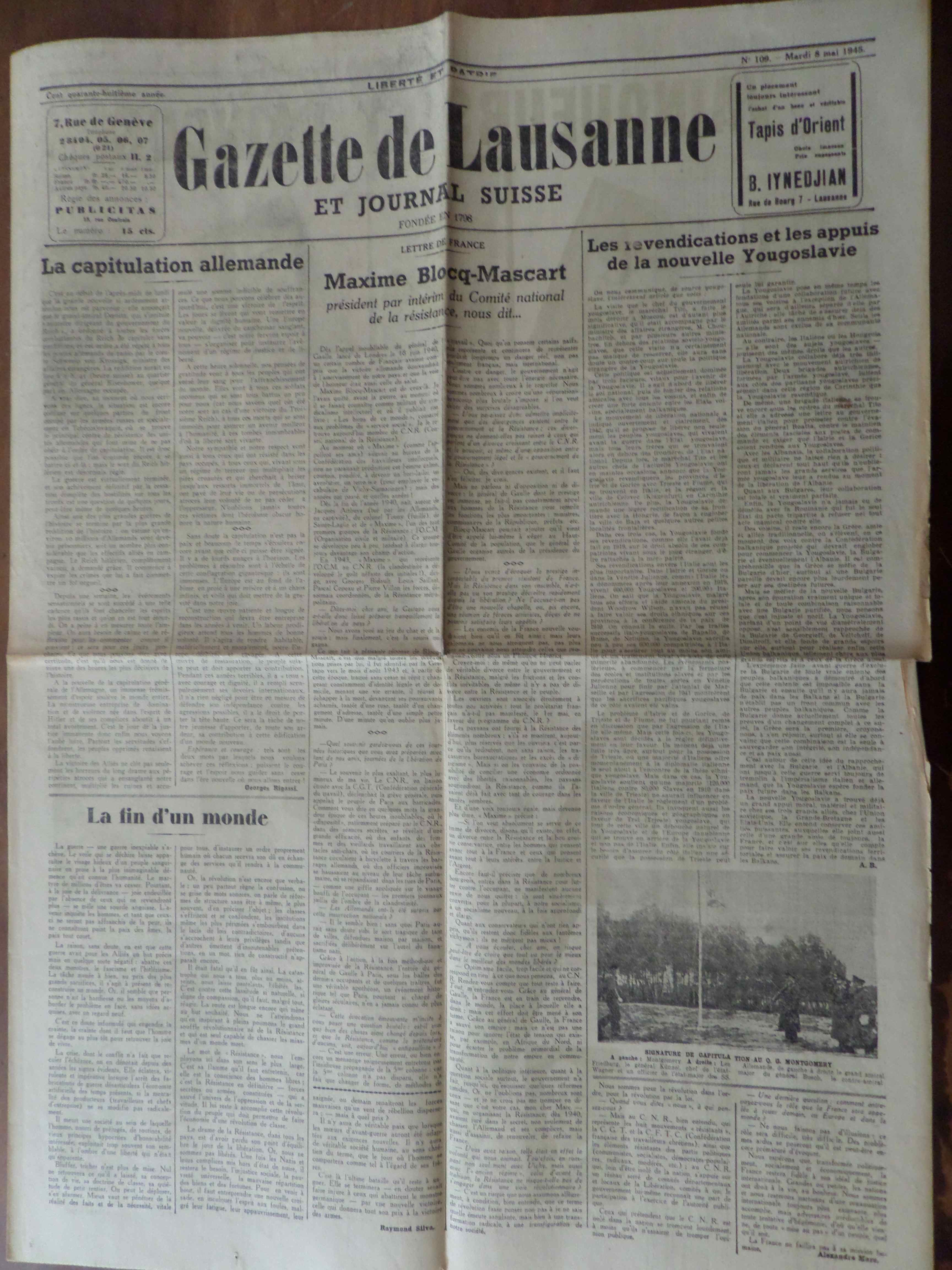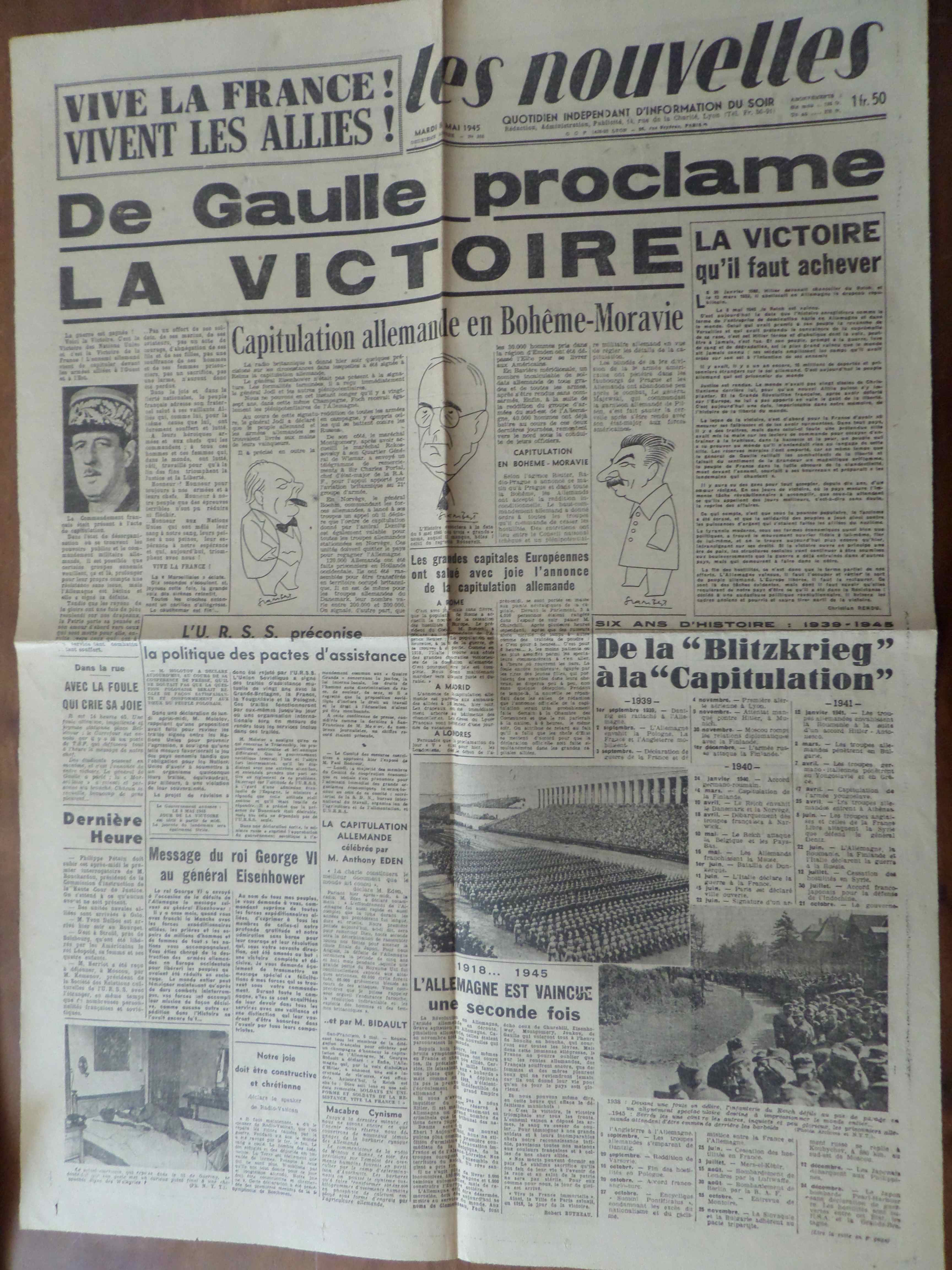 Mardi 8 mai 1945: les journaux annoncent la Capitulation du IIIème Reich