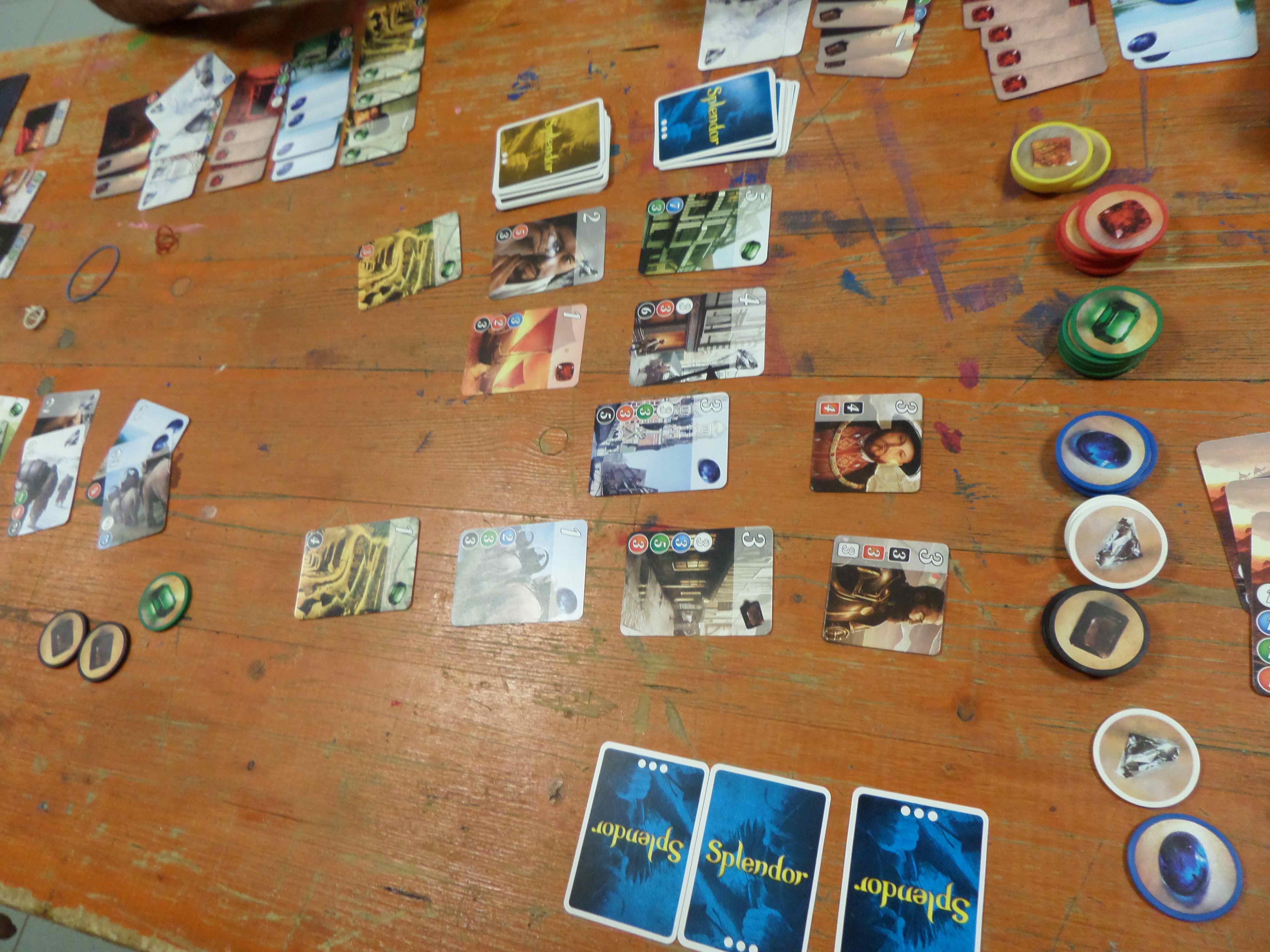 SPLENDOR (à 4): Pas brillant, le jeu s’est arrêté au moment où je croyais que j’allais marquer des points. C’est ballot avec seulement 3 petits points au compteur (/15 pour finir)!