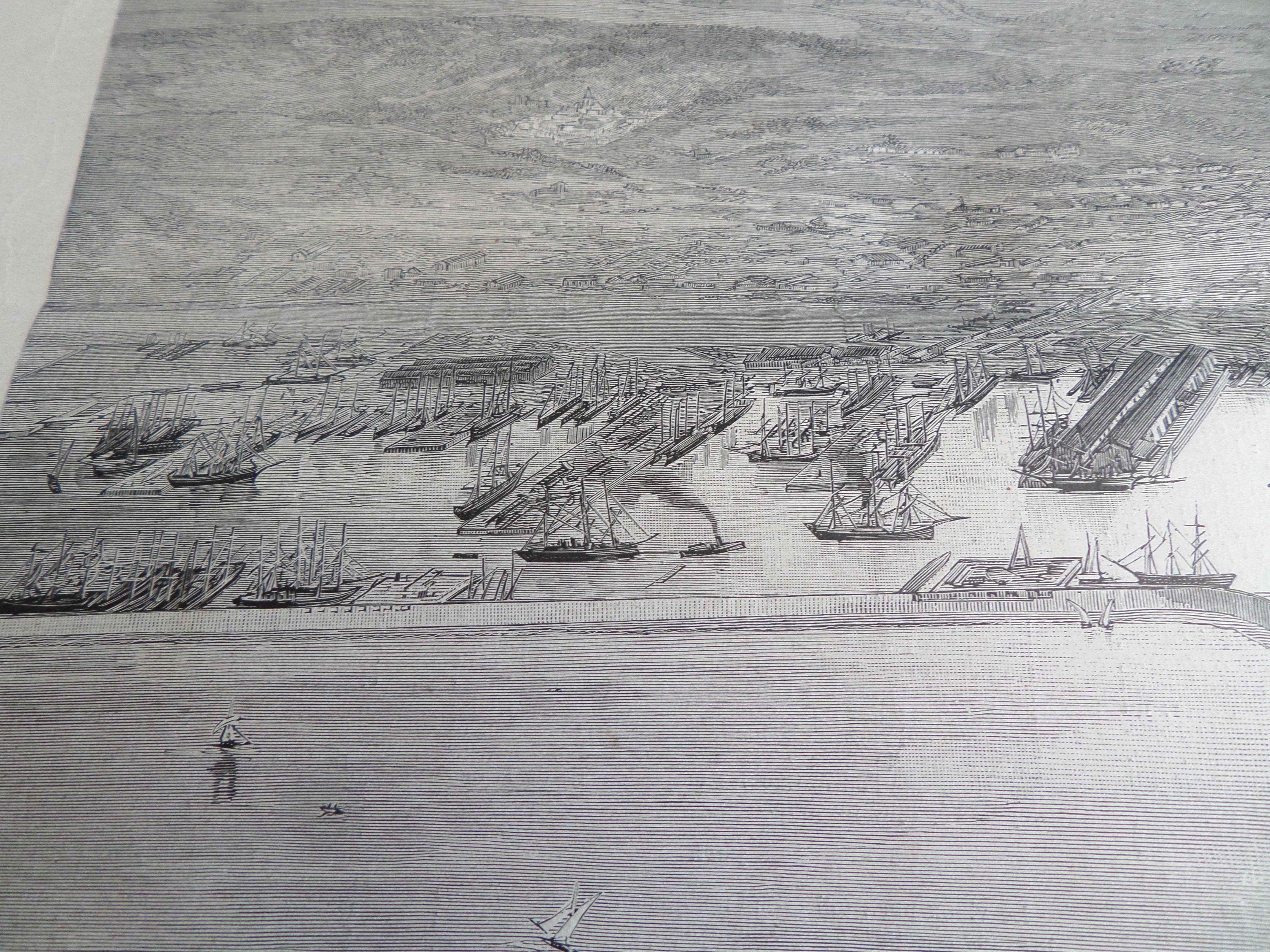 Au premier plan (sur le dessin général) on peut voir en face de l’entrée, le palais du Pharo construit sous Napoléon III pour l’impératrice Eugénie de Montijo. A gauche du port, on voit le quartier du Panier avec ses maisons très serrées tel qu’il était avant que la Wehrmacht ne le détruise en 1944. Le Panier devenu le Mistral dans un actuel feuilleton célèbre sur France 3, est dominé par l’Hôtel-Dieu que Rimbaud n’allait pas tarder d’intégrer pour y finir son existence aventureuse.
