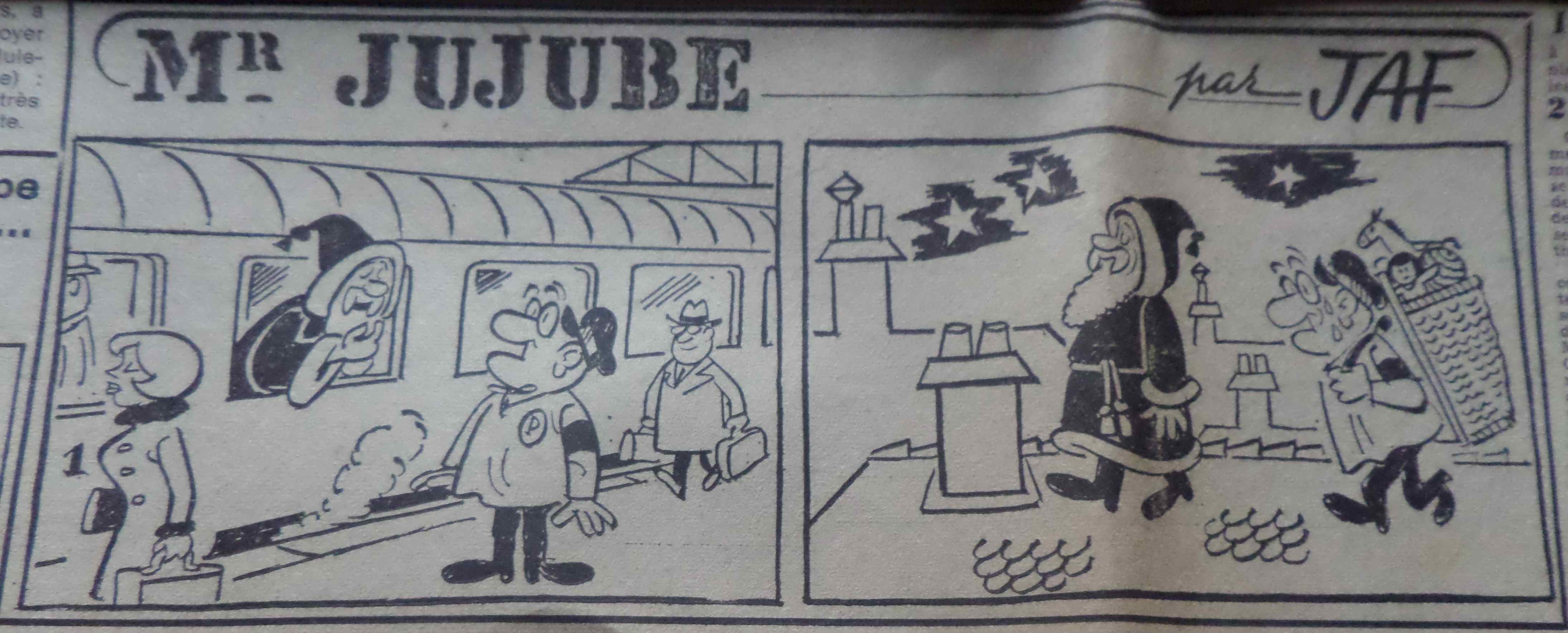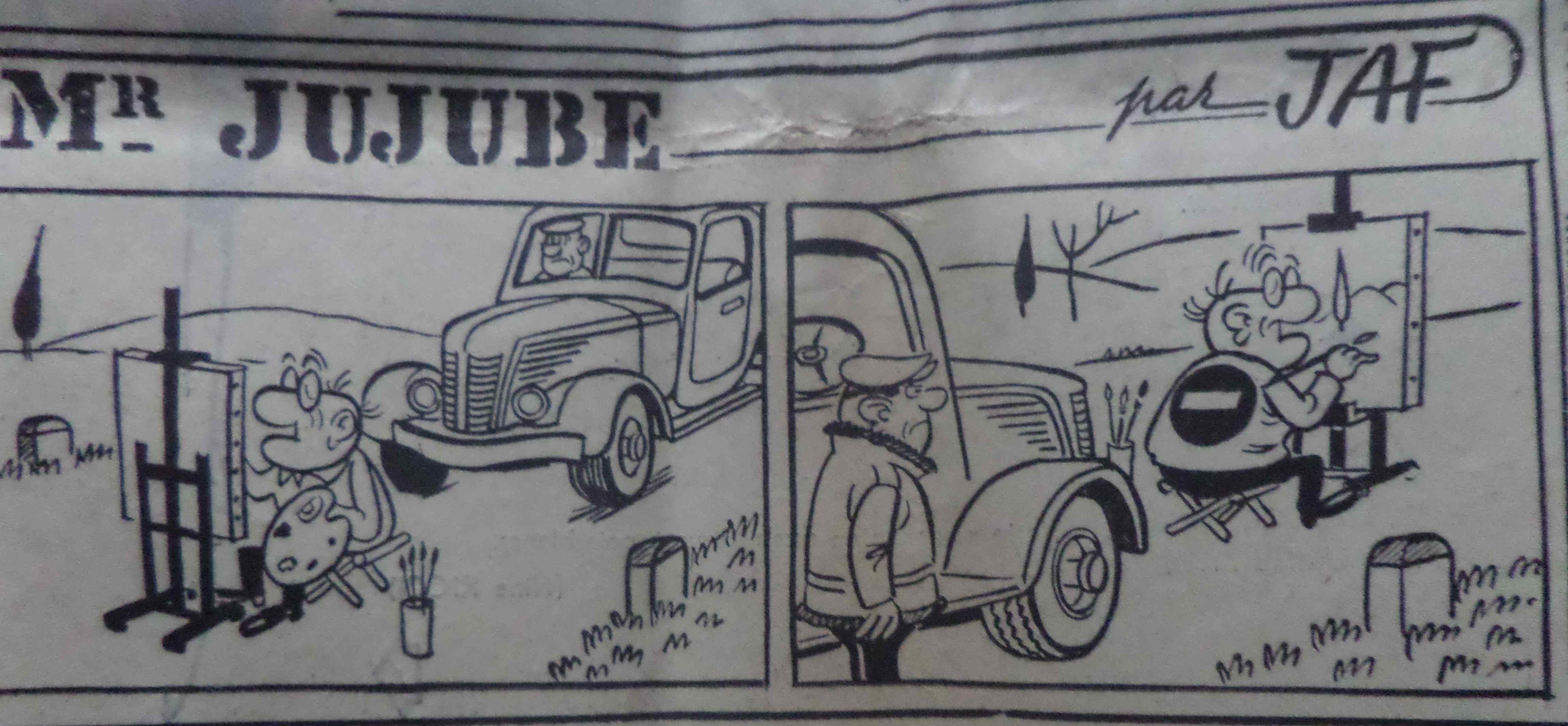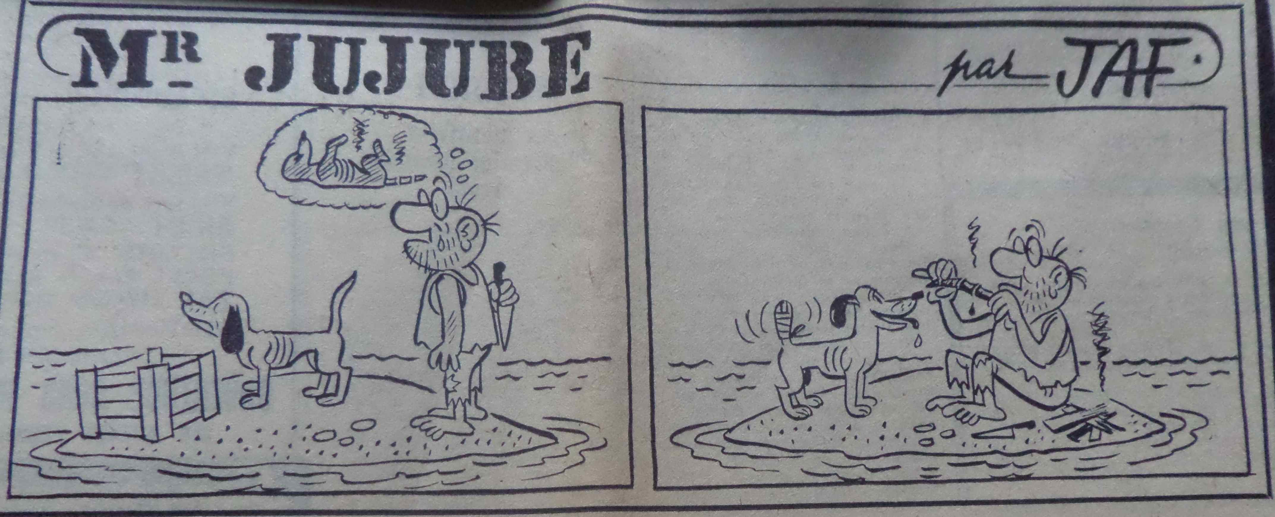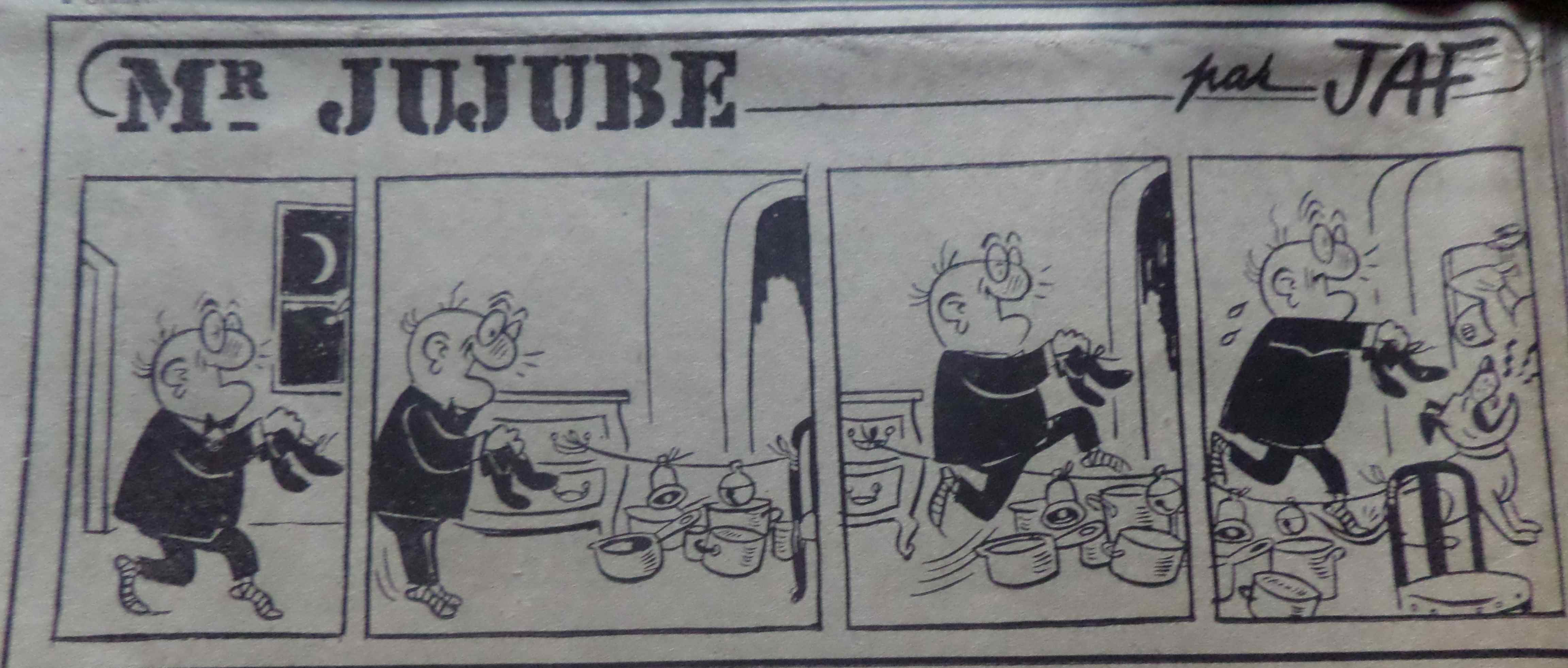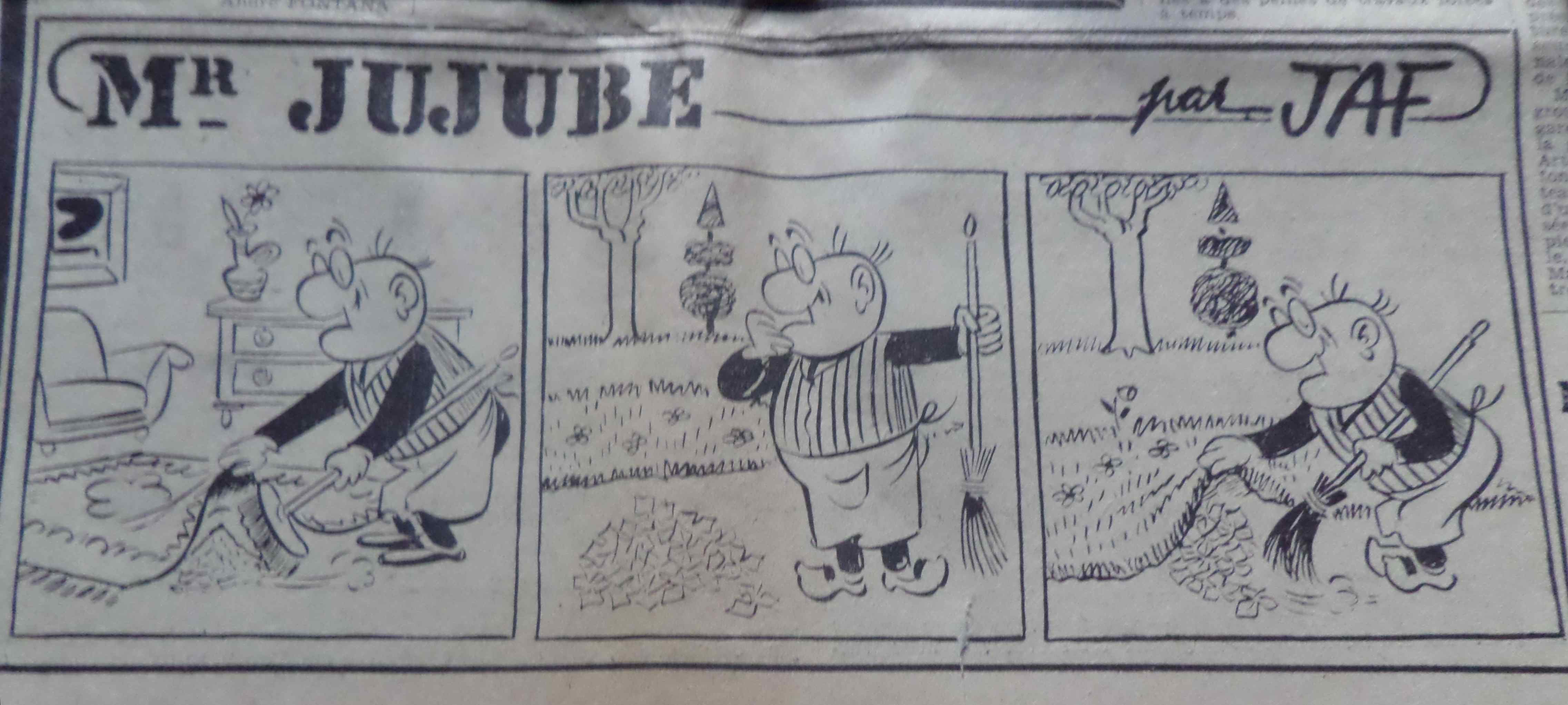 Tout petit, la première chose que je lisais dans le journal quotidien qu’achetaient mes grands-parents, c’était cette petite bande dessinée de 2 ou 3 cases. C’était aussi le cas de mon grand-père d’ailleurs. Ainsi, j’ai toujours eu un faible pour Monsieur JUJUBE, le personnage créé par JAF dans le Provençal.