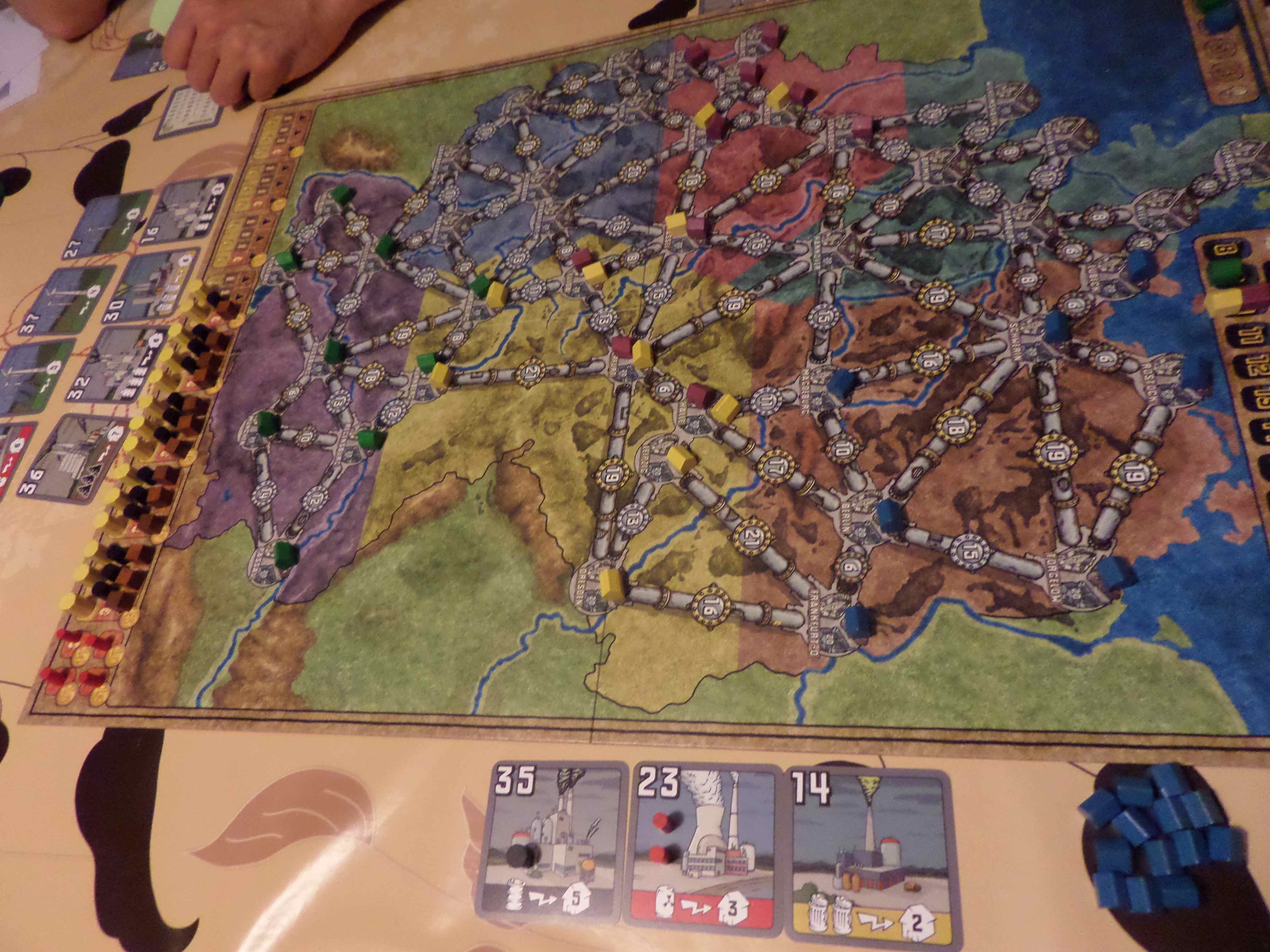 Funkenschlag est le prototype des jeux de gestion, on achète des centrales aux enchères et on raccorde des villes à son réseau, ce qui permet de recevoir des recettes qui vont servir à développer sa puissance économique. Pas fun mais efficace!