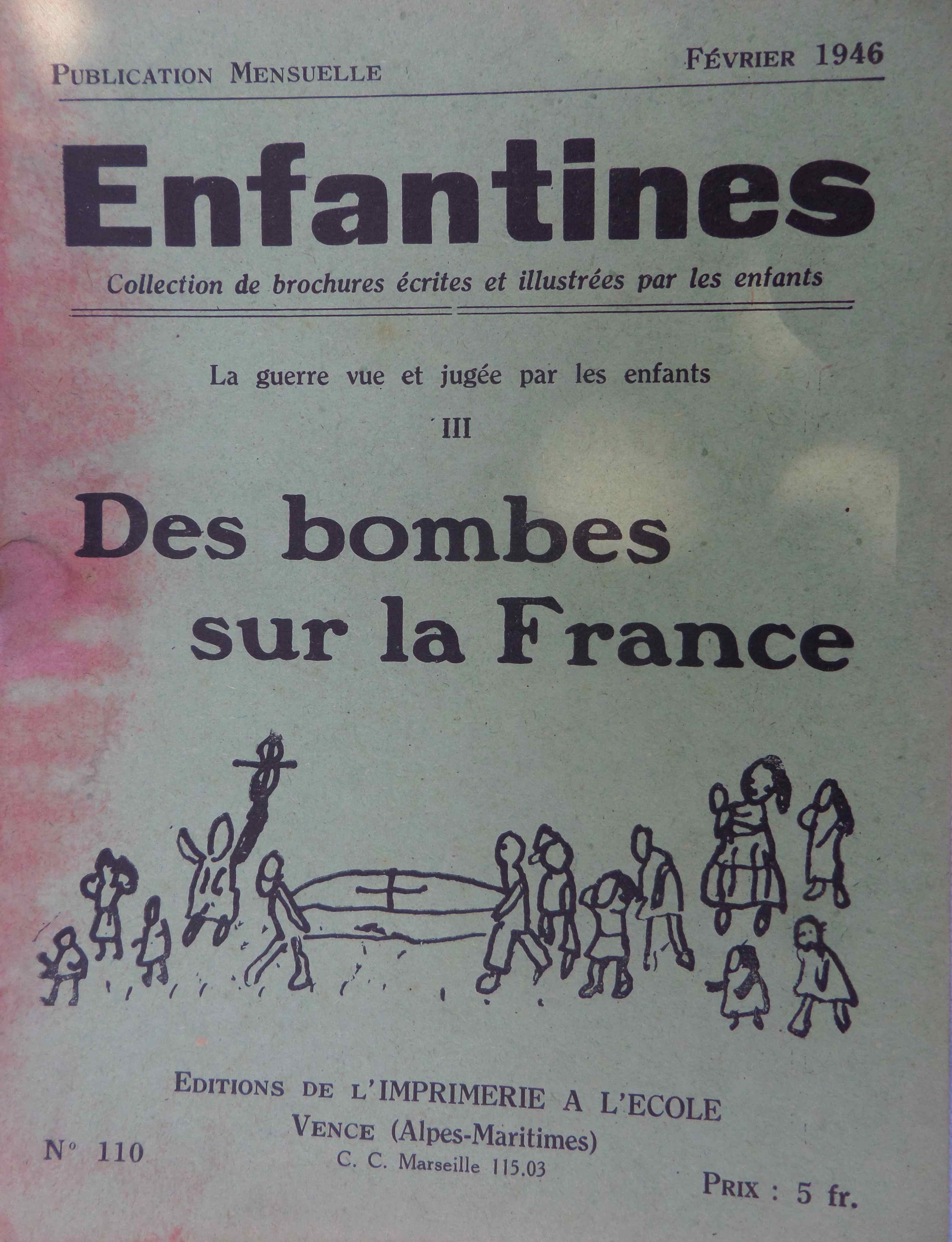 Ce numéro d’Enfantines (des BT pour plus jeunes) daté de février 1946 « Des bombes sur la France » donne la parole aux enfants ayant vécu les bombardements alliés dans plusieurs coins de l’Hexagone.