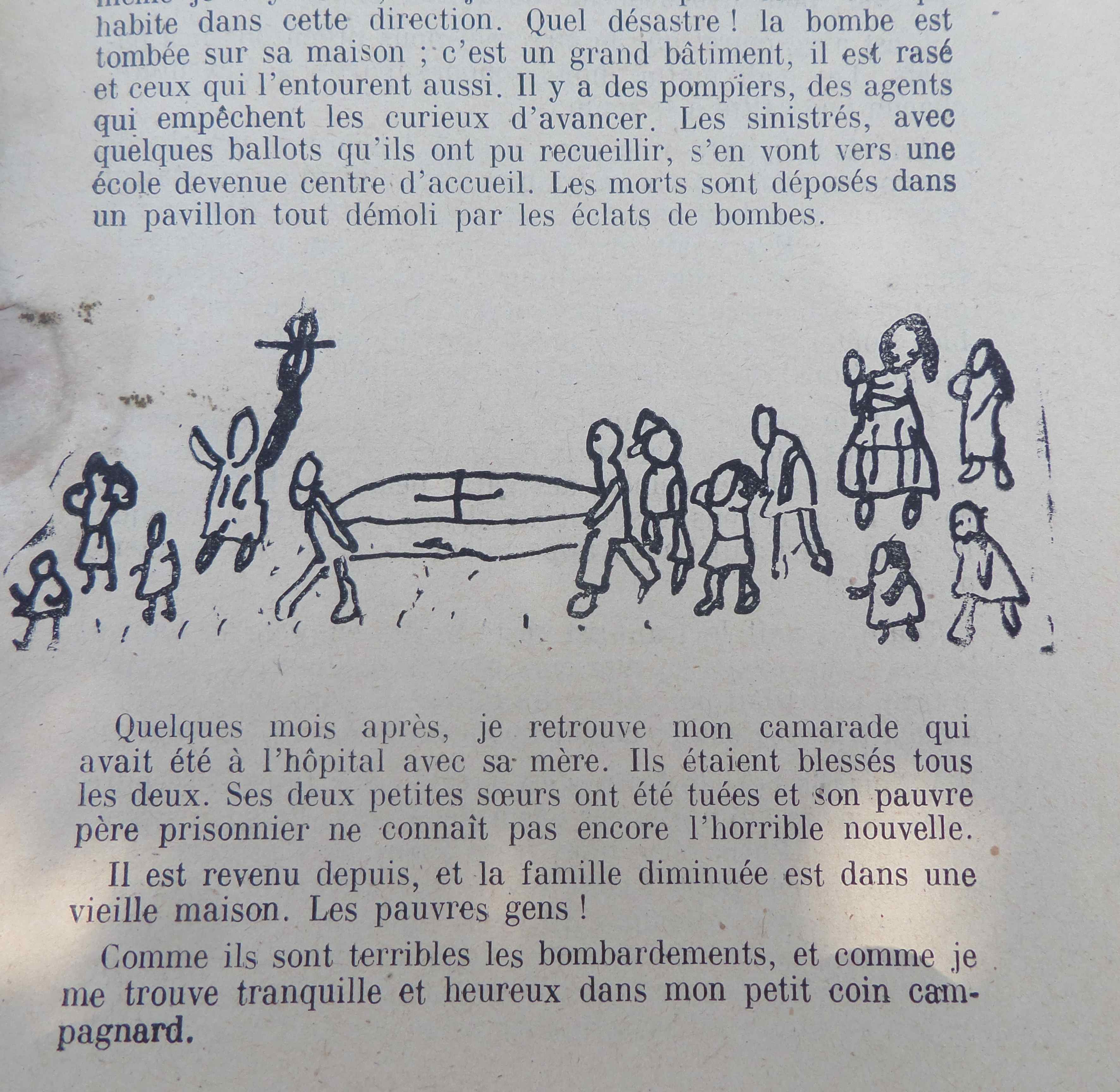 Les enfants décrivent les bombardements très proches, leurs peurs, les destructions et les victimes. Derrière ces actions, se cachent des objectifs militaires ou stratégiques mais le jeu en voulait-il la chandelle et (comme dit dans le texte du 5 juin dernier), armer la Résistance intérieure pour qu’elle effectue ces actions aurait certainement sauvé de nombreuses vies. On a vu l’efficacité de la Résistance Rail au moment du Débarquement.