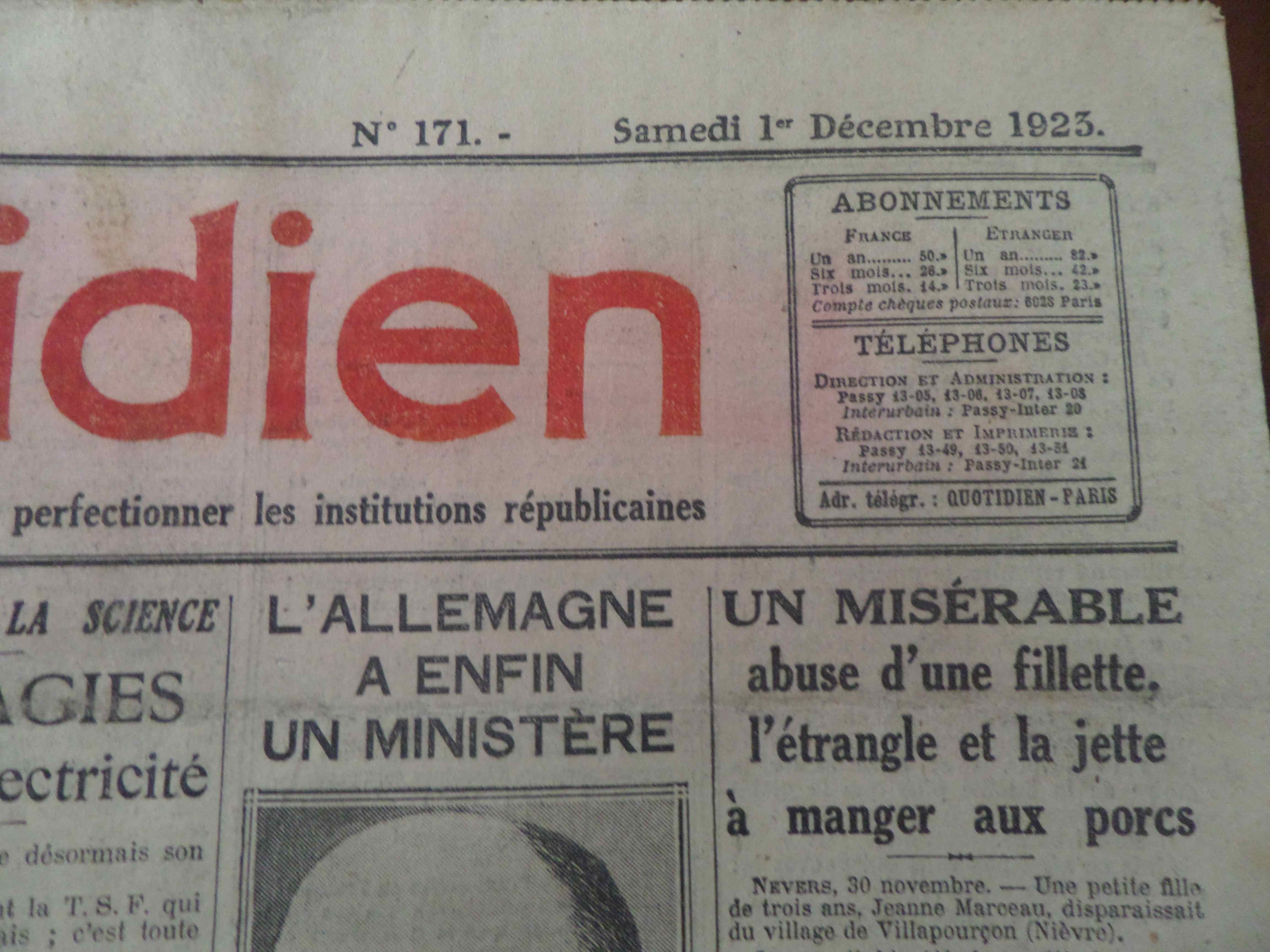 Quelques jours après dans le même quotidien