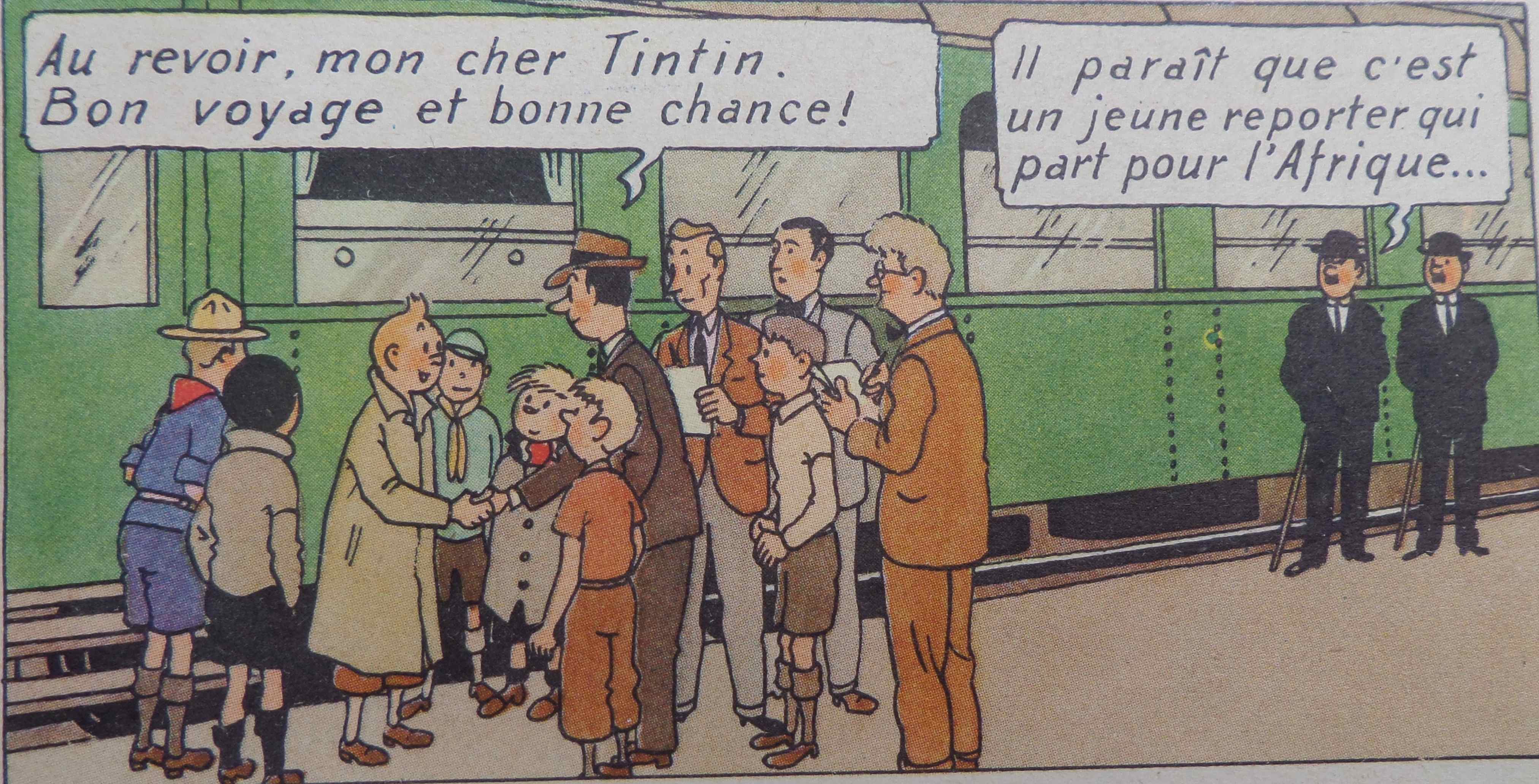 La première image de l’histoire montre le départ du héros pour la colonie sur le quai de la gare de Bruxelles.