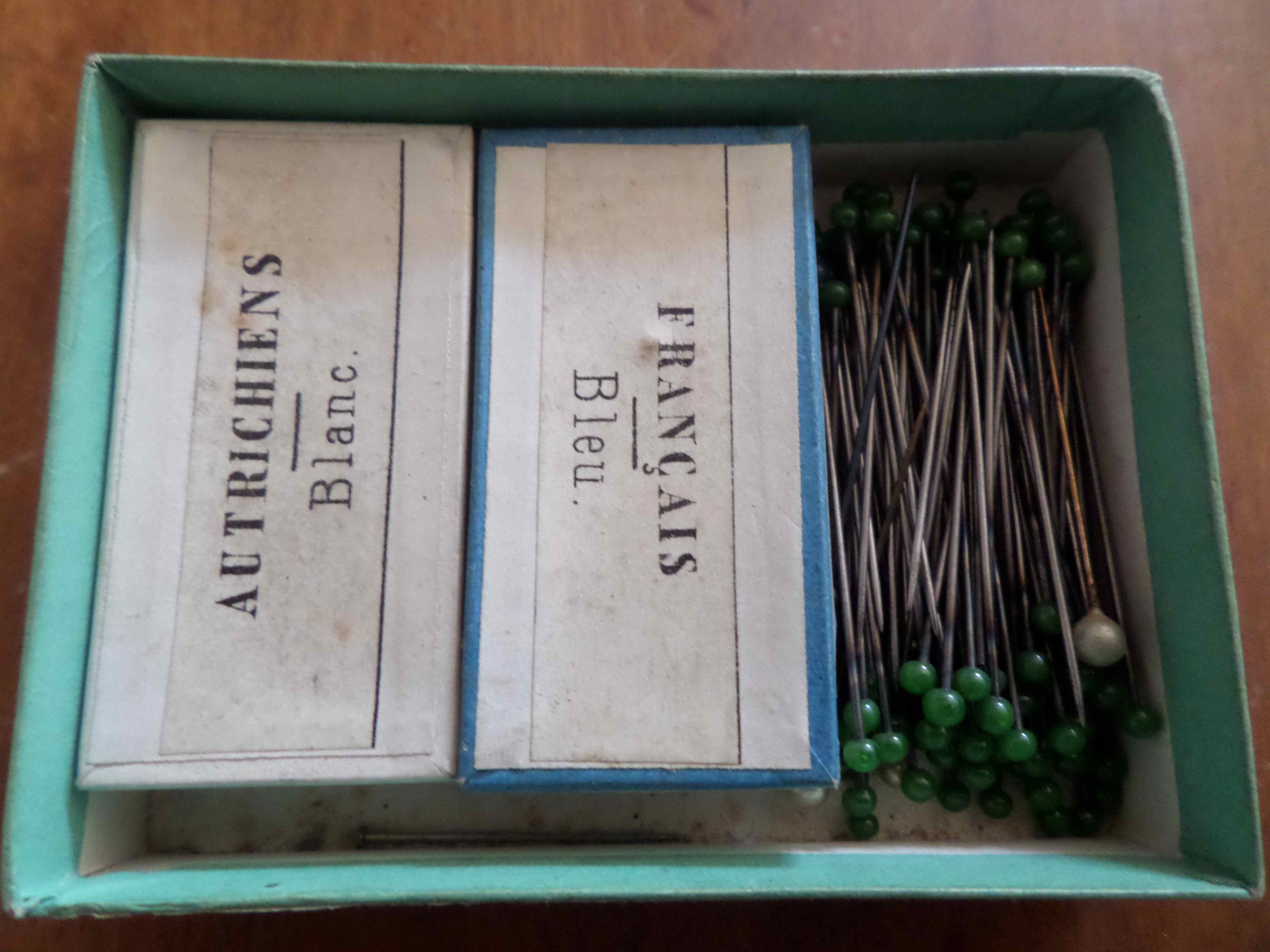 et dans les coffrets présents, des épingles bleues pour la boîte des Français et des épingles blanches pour celle des Autrichiens.