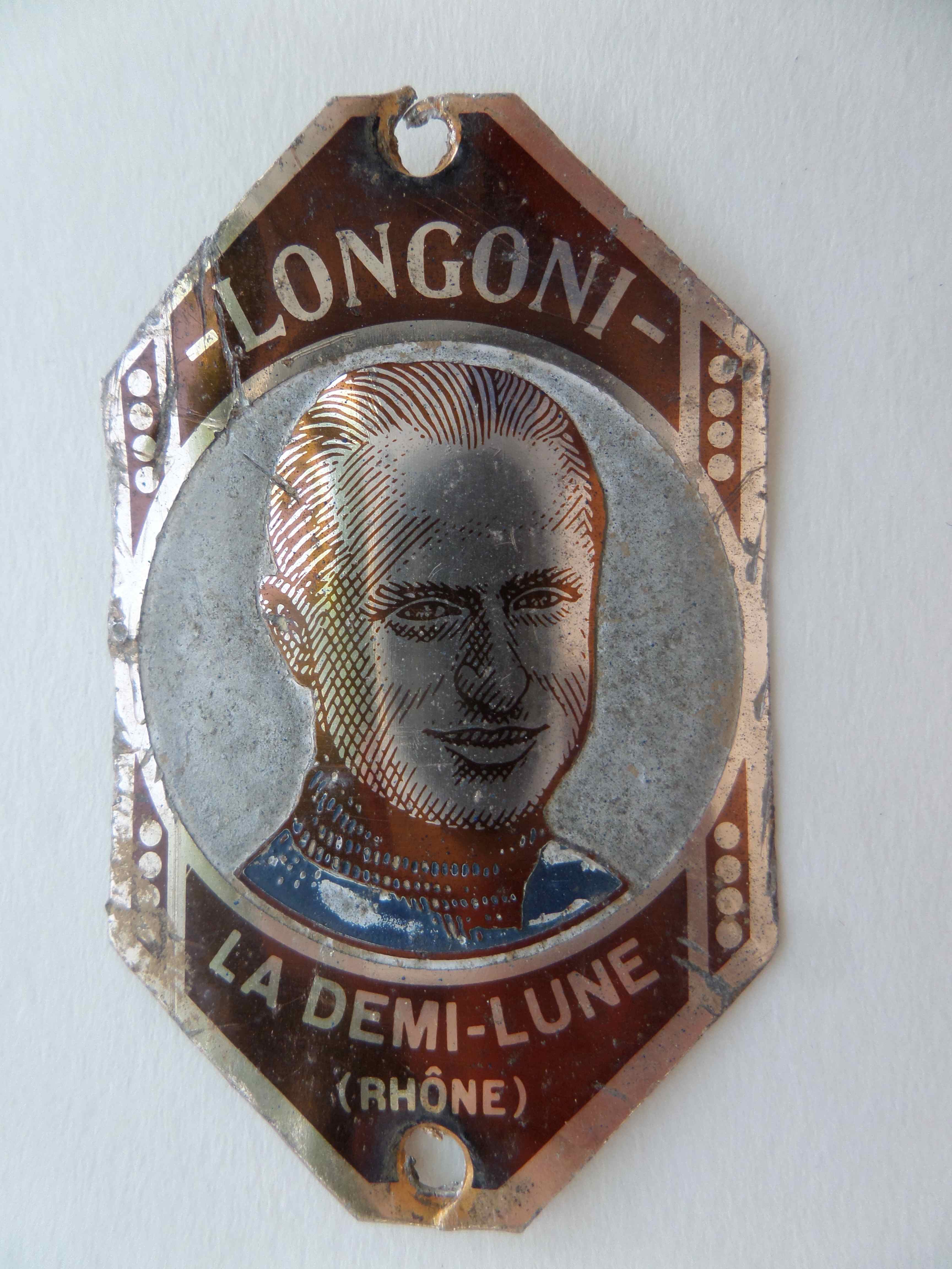 Les CYCLES LONGONI de La DEMI-LUNE (de nos jours Tassin-la-Demi-Lune) avec le portrait du créateur de la marque, Charles Longoni, ancien coureur cycliste d’origine italienne installé en banlieue lyonnaise. Il termina honorablement le Tour de France 1923.