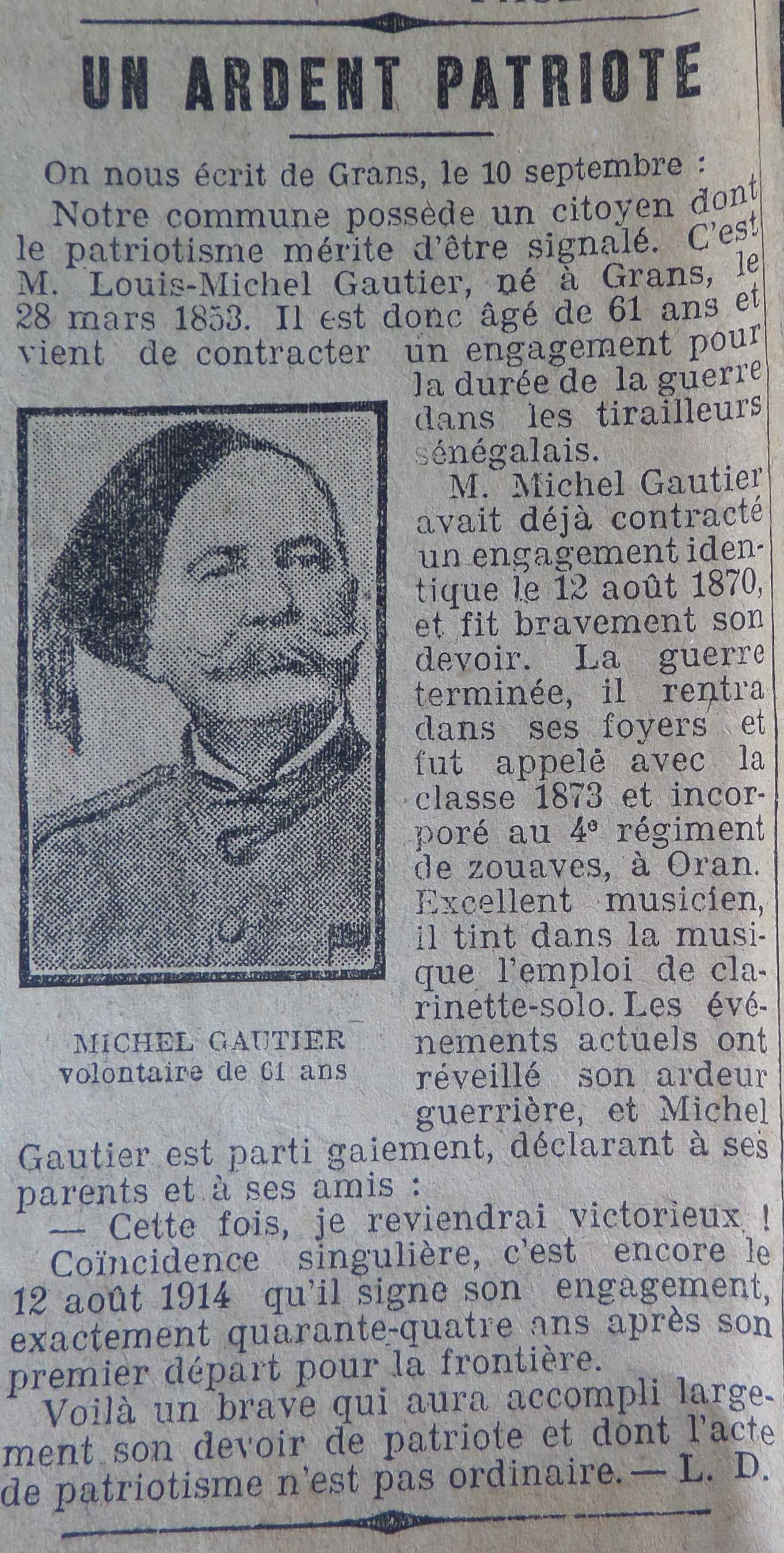qui à 61 ans vient de se rengager dans l’armée comme il le fit en 1870 à l’âge de 17 ans pour combattre les Allemands (les Prussiens à l’époque). Anecdotique!