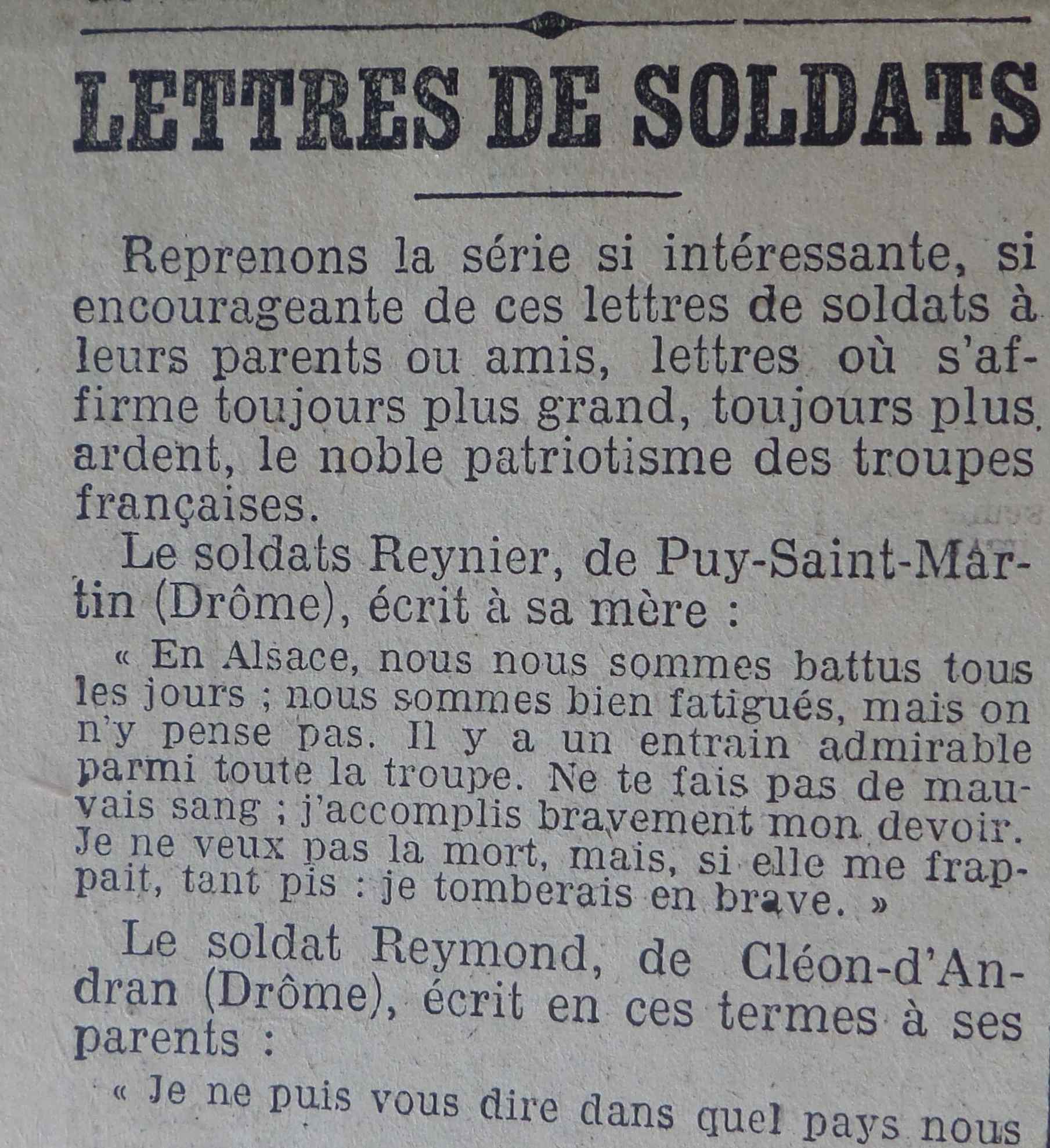 En dernière page, le journal nous reproduit des lettres de soldats à leurs familles,