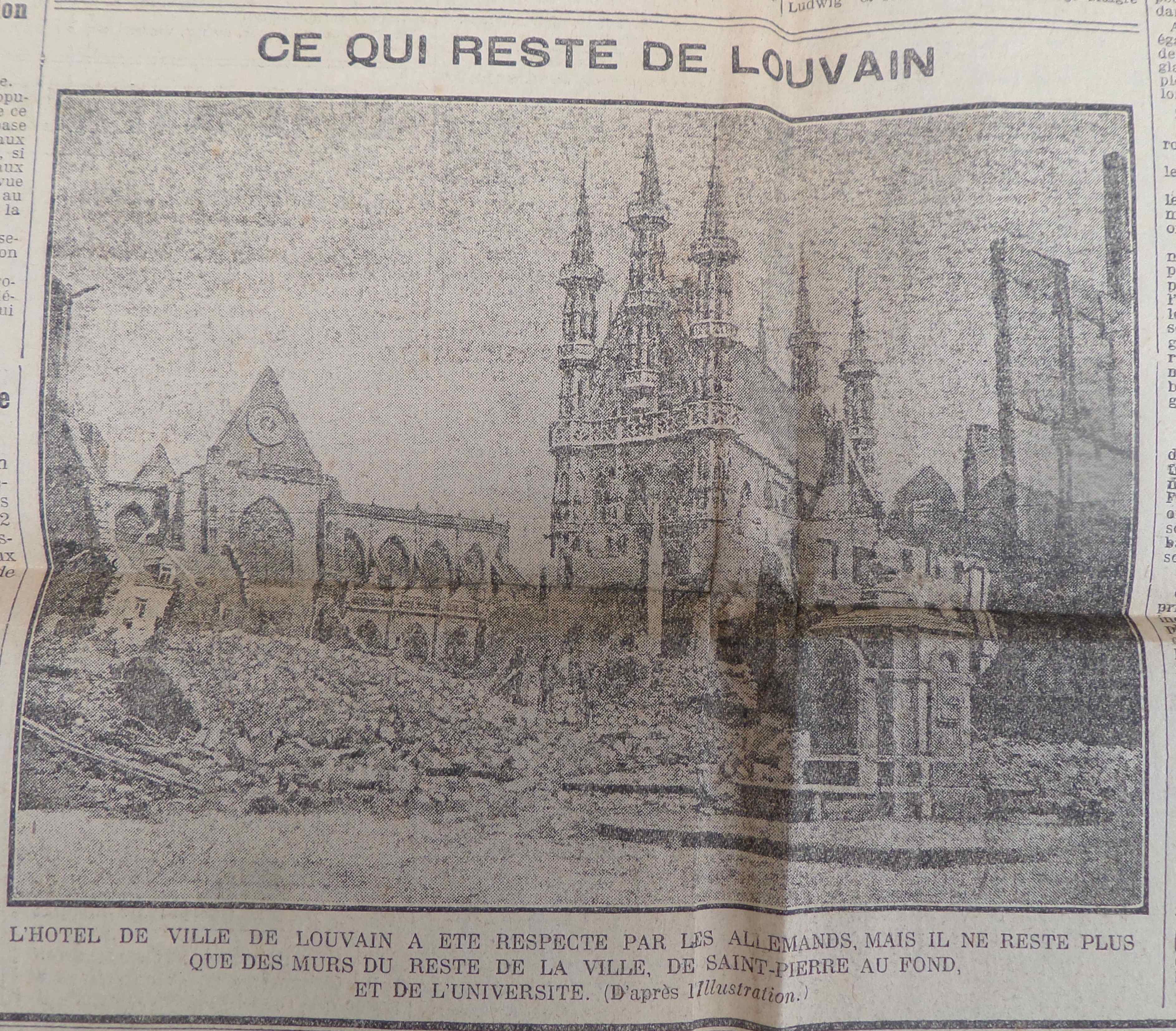 Louvain, ville belge, a elle-aussi connu les affres des destructions comme en atteste la seule illustration du journal en page 4