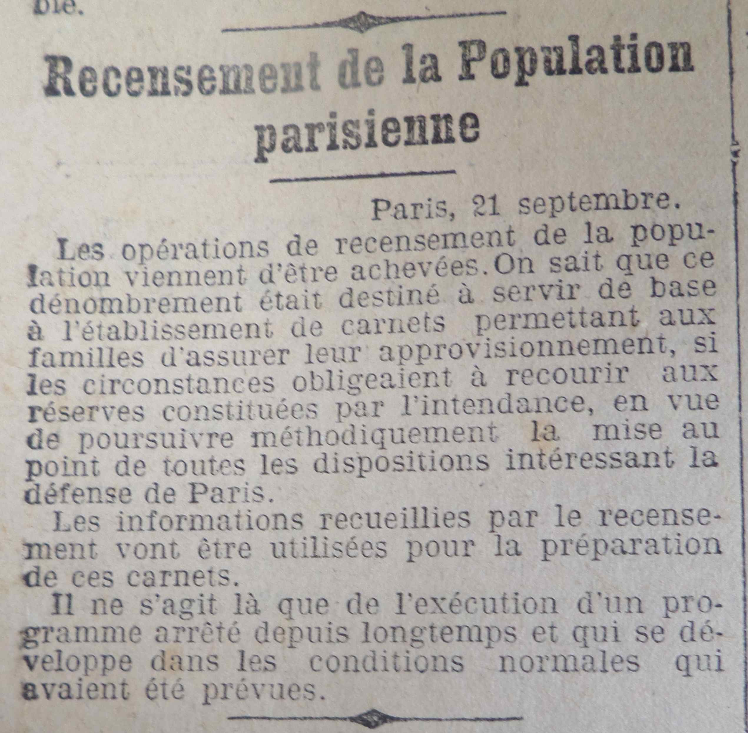 Ainsi, le recensement de la population est terminé et on pourra préparer d’éventuels tickets de rationnement.