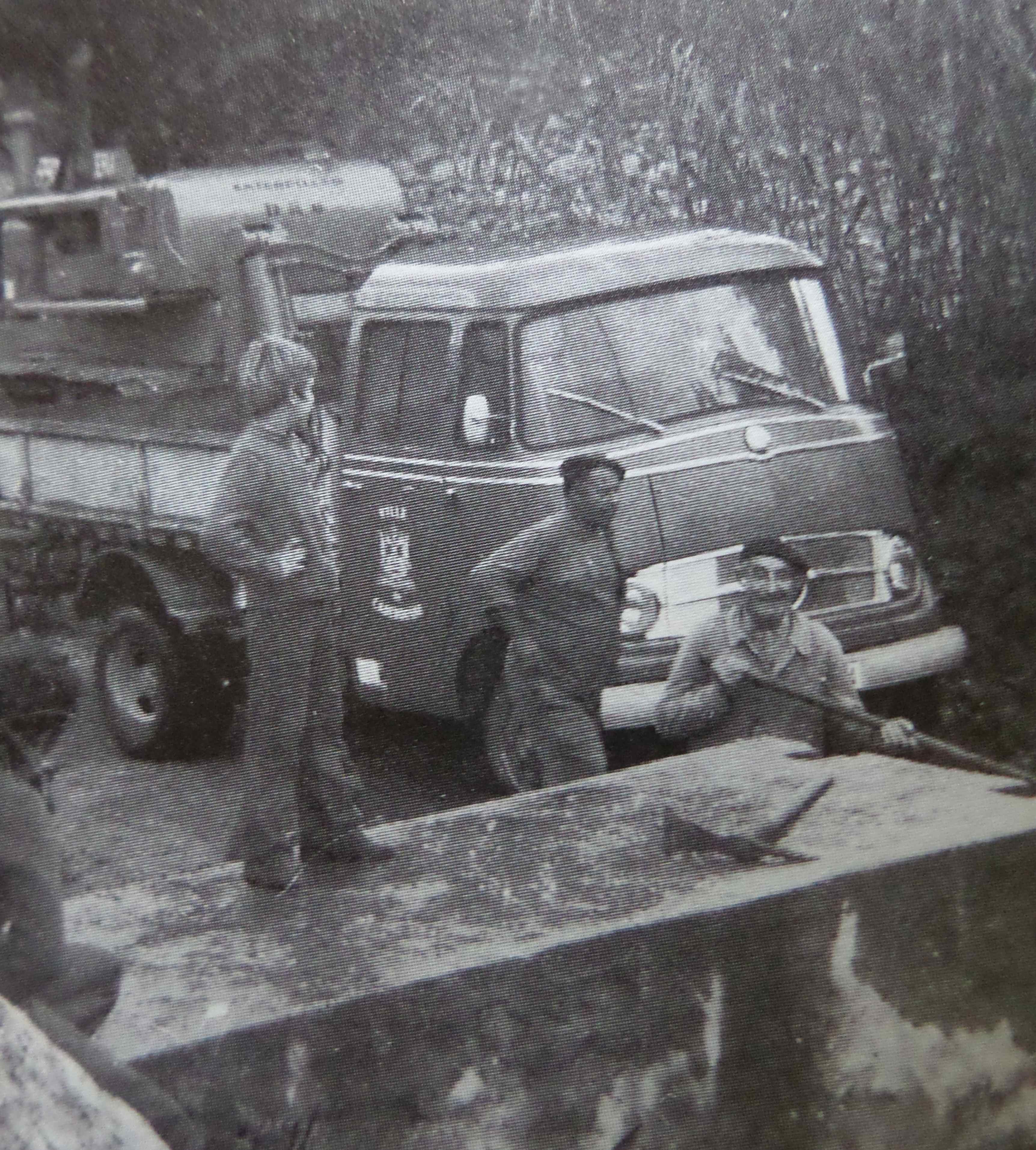 Sur cette photo, on voit au centre, devant le camion des pompiers, un peu voûté,