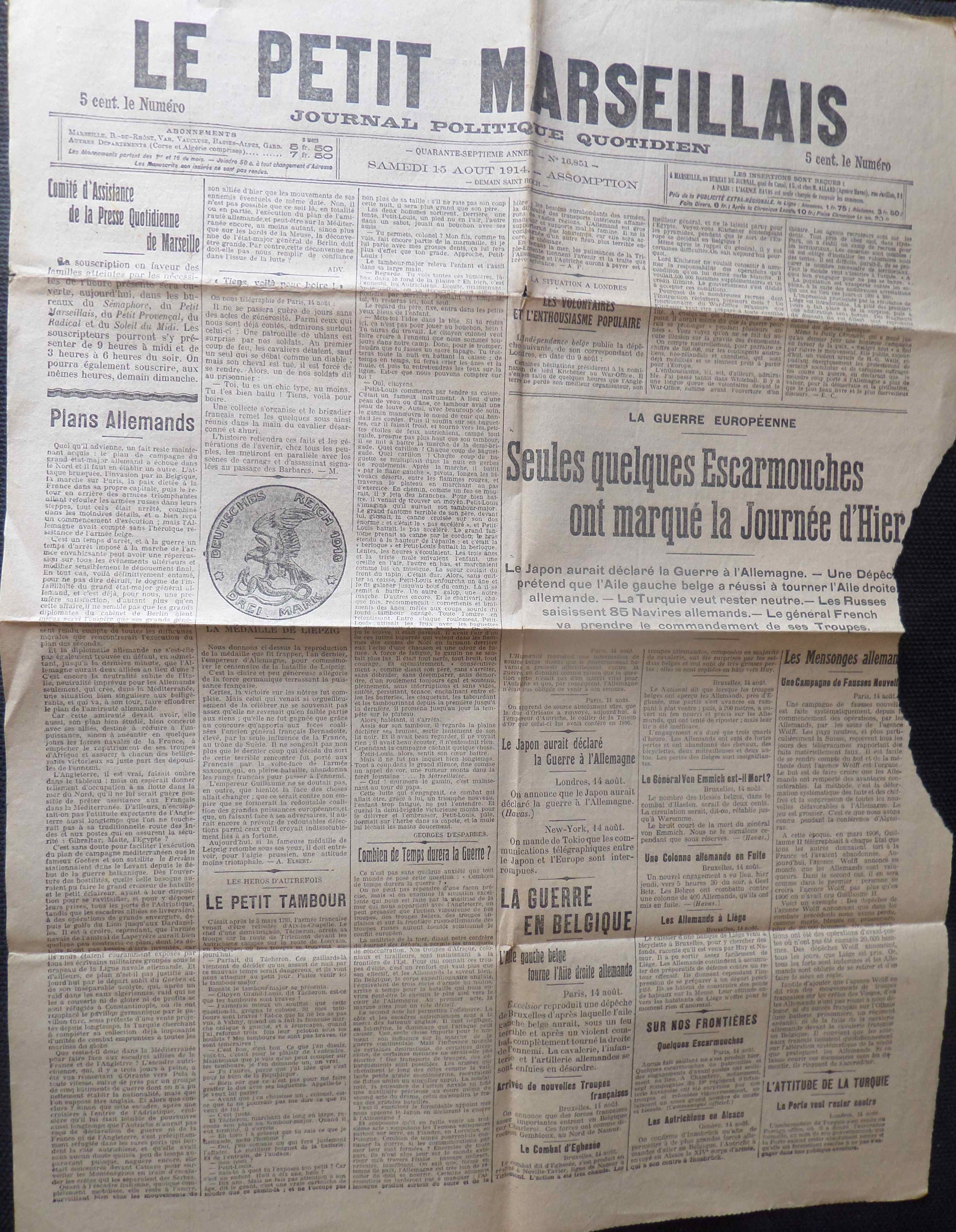LE PETIT MARSEILLAIS du 15 Août 1914 (12ème jour de guerre)