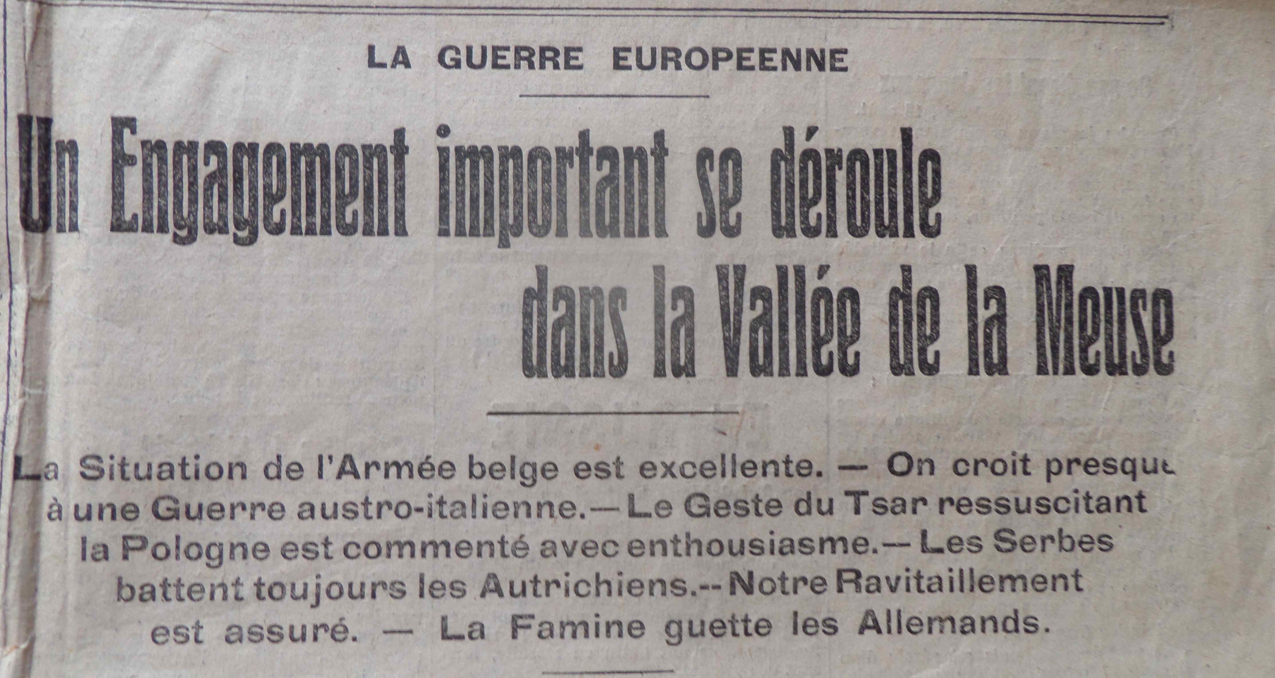 Peu de nouvelles objectives puisque le journal parle d’un échec allemand en Belgique alors que les faits sont bien différents.