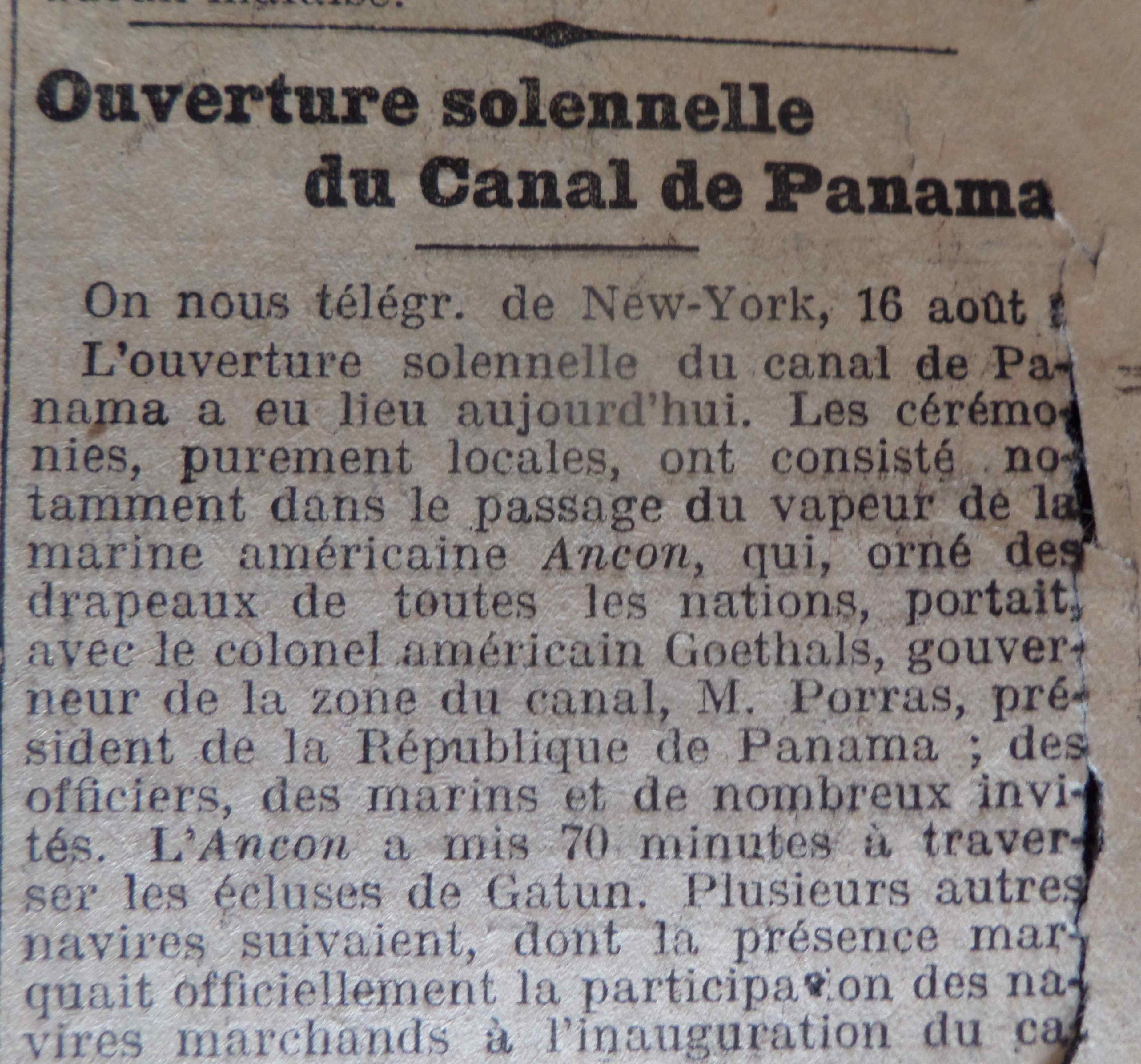 L’ouverture du canal de Panama, ce passage de 82 km reliant l’Atlantique au Pacifique, si important pour le commerce nord-américain avec des gains de temps et d’argent considérables… oeuvre titanesque qui vit toutefois la mort de plus de 27 000 ouvriers sur les chantiers.