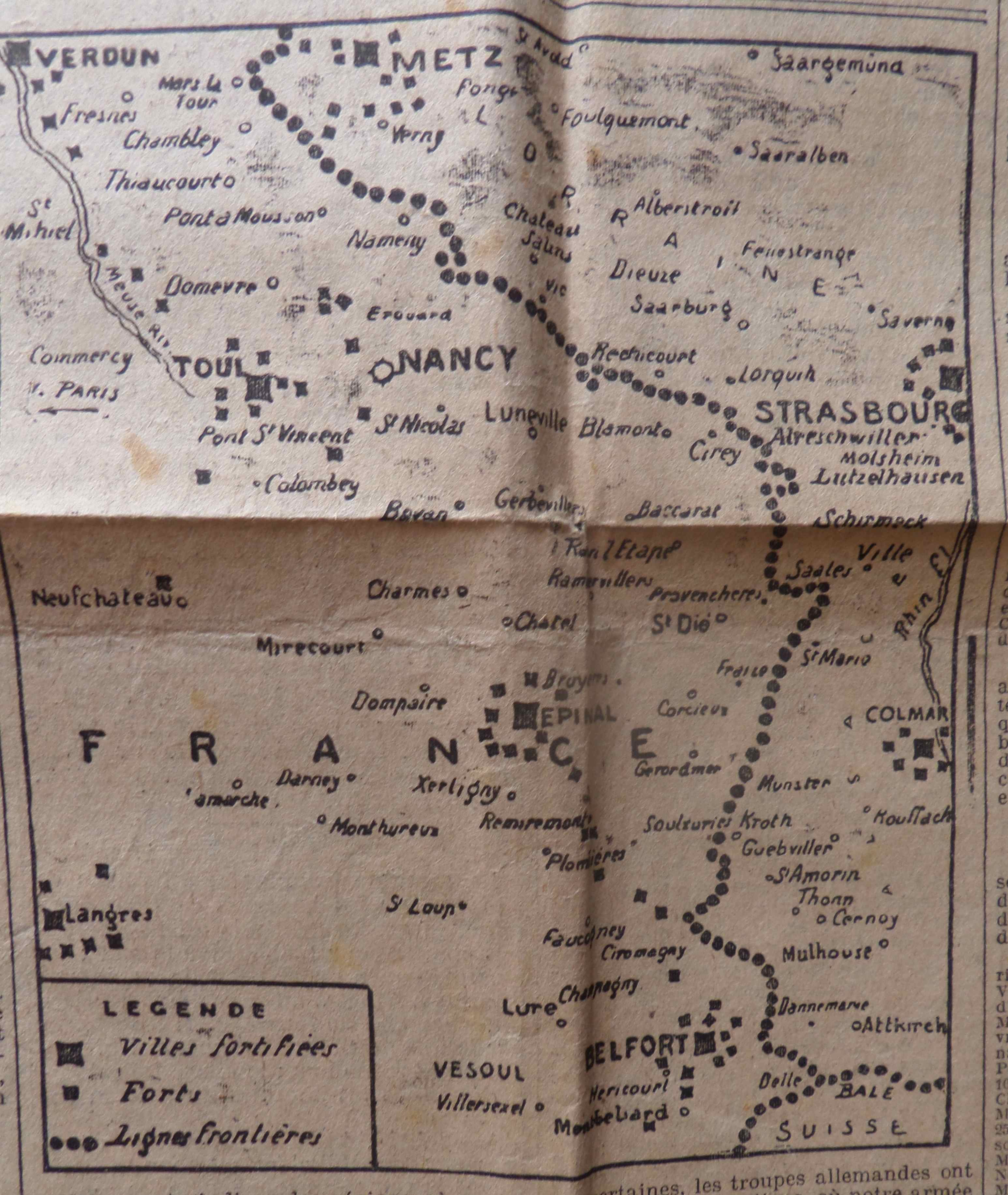Les combats dans les Vosges et en Alsace… avec une carte des opérations… le fameux Hartmannswillerkopf (surnommé le Vieil Armand par les chasseurs alpins français) où se déroulèrent des combats pour le contrôle de positions dominant cette plaine. Dans la réalité, on est loin d’un « fort établissement des Français en Alsace ».