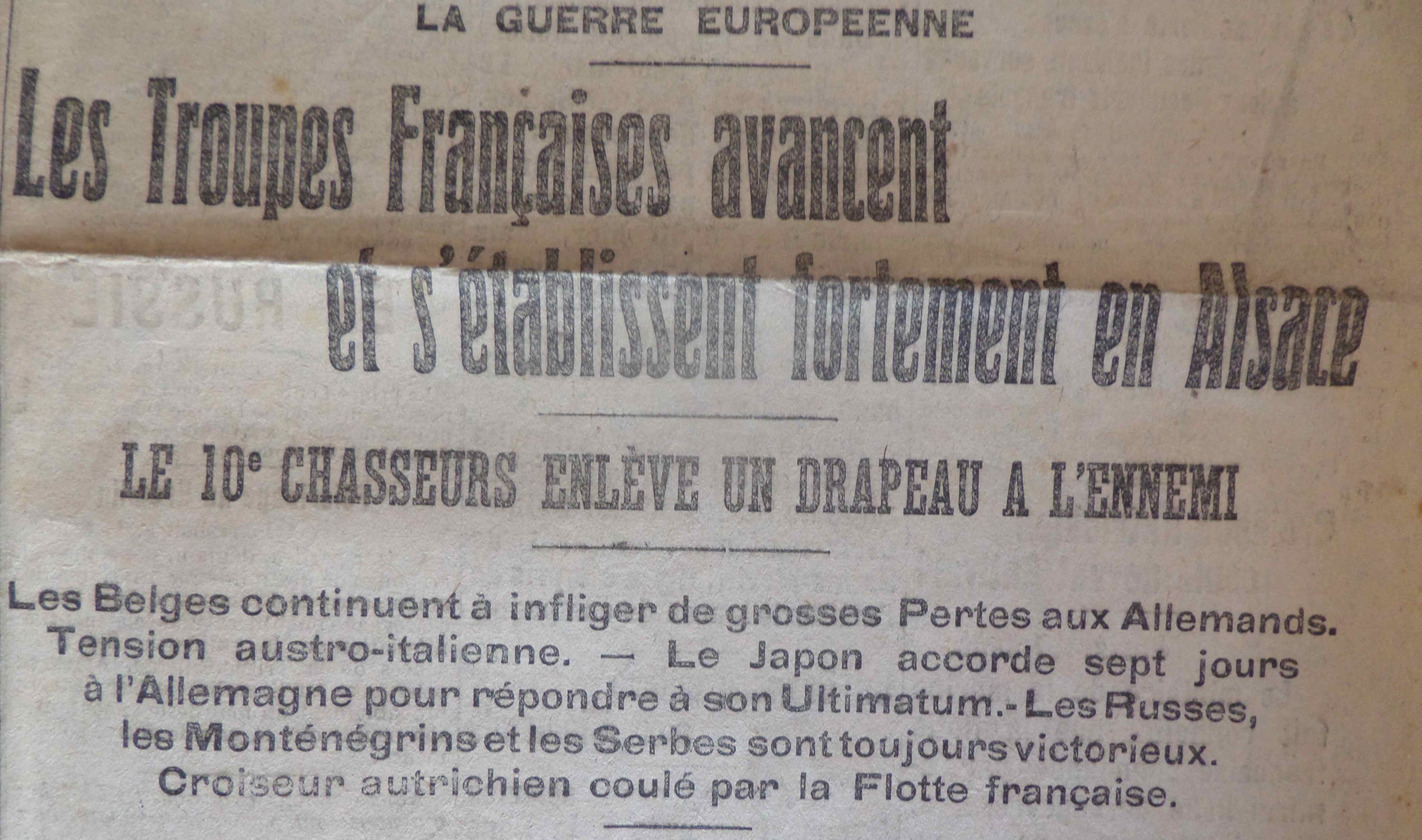 Survolons les unes de ces journaux du premier mois de la Grande Guerre.