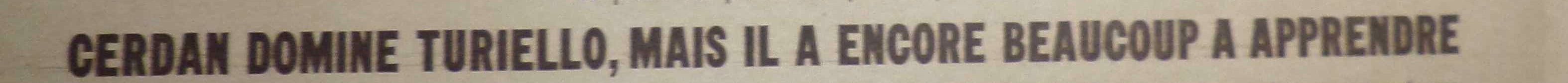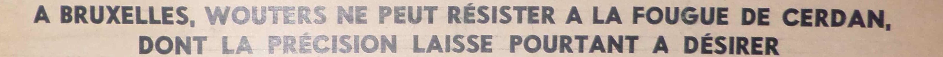 Car le spécialiste boxe du Miroir des Sports, tout en reconnaissant les qualités pugilistiques de Cerdan, ne sera jamais enthousiasmé par ses prestations. D’où ces titres…