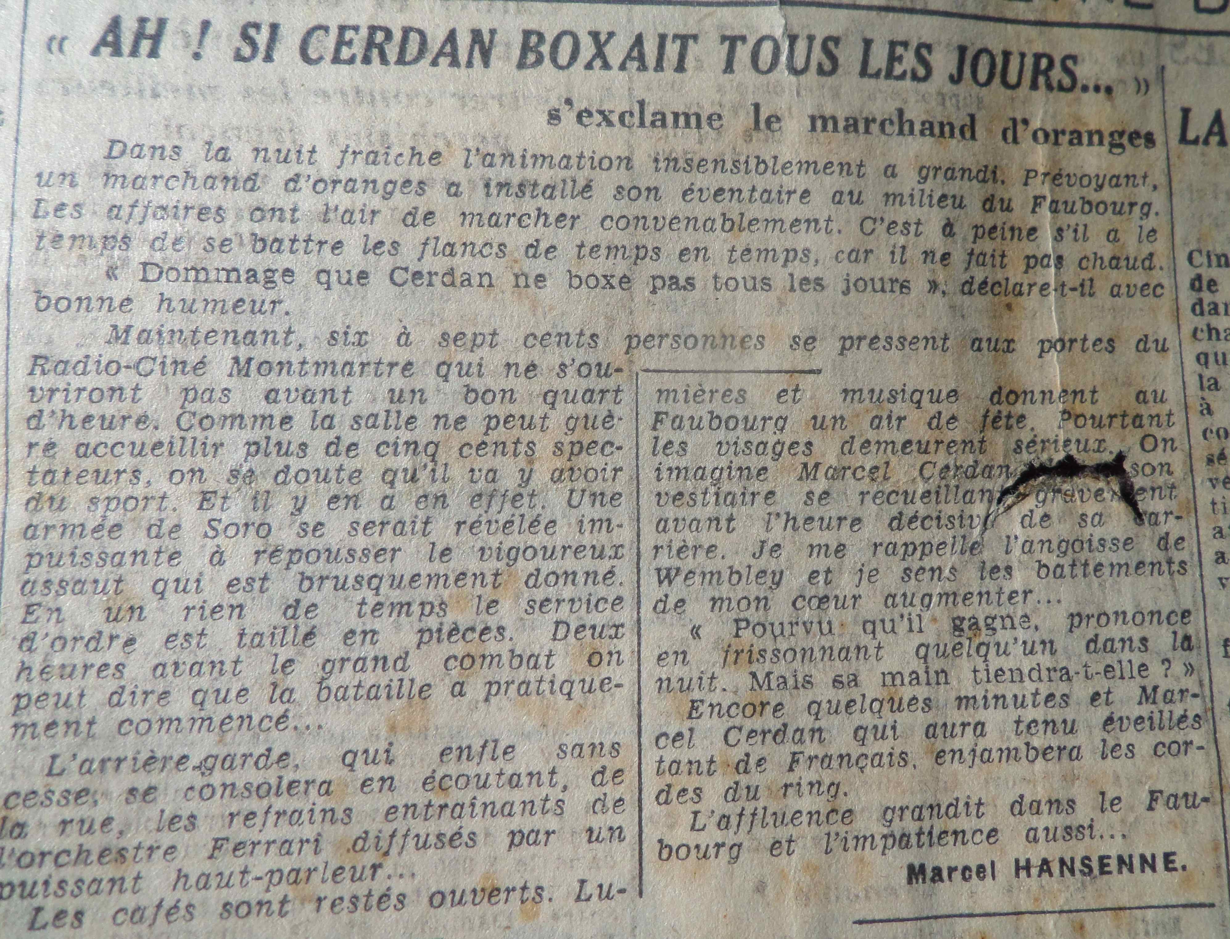 A suivre: 3/4 Les débuts de Cerdan avant-guerre dans la presse