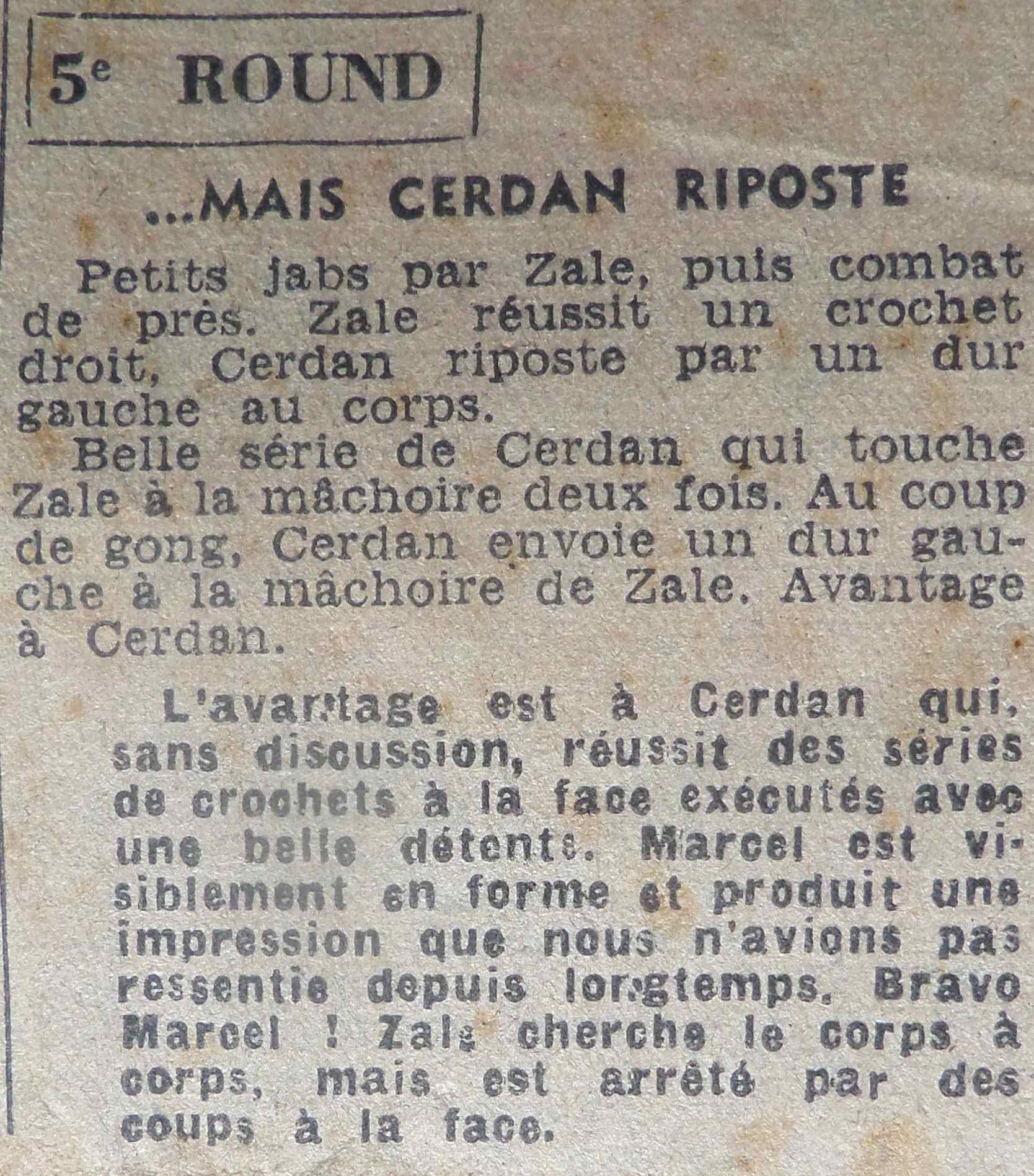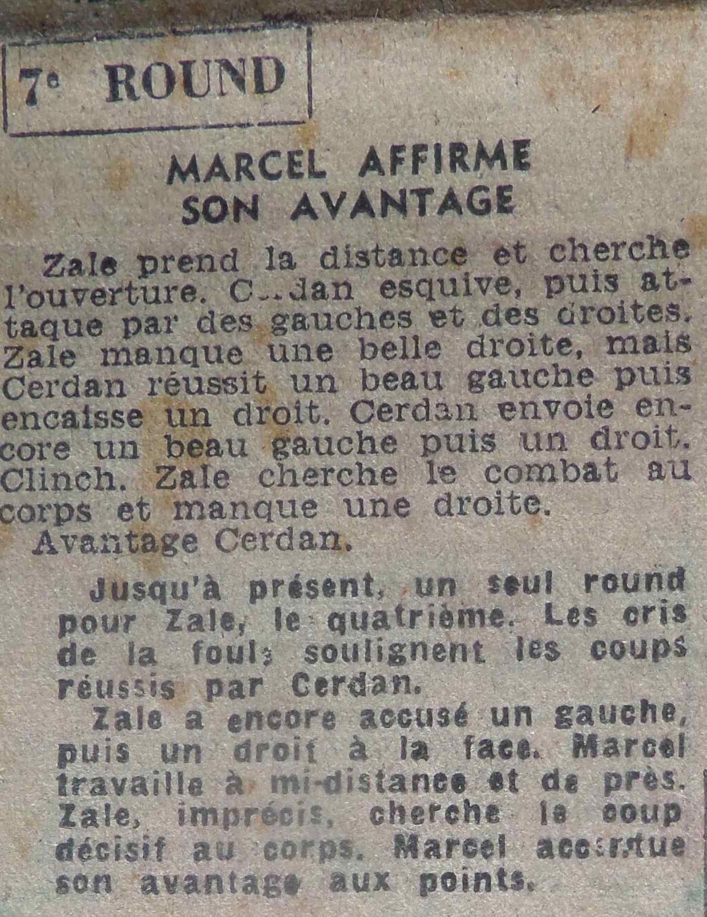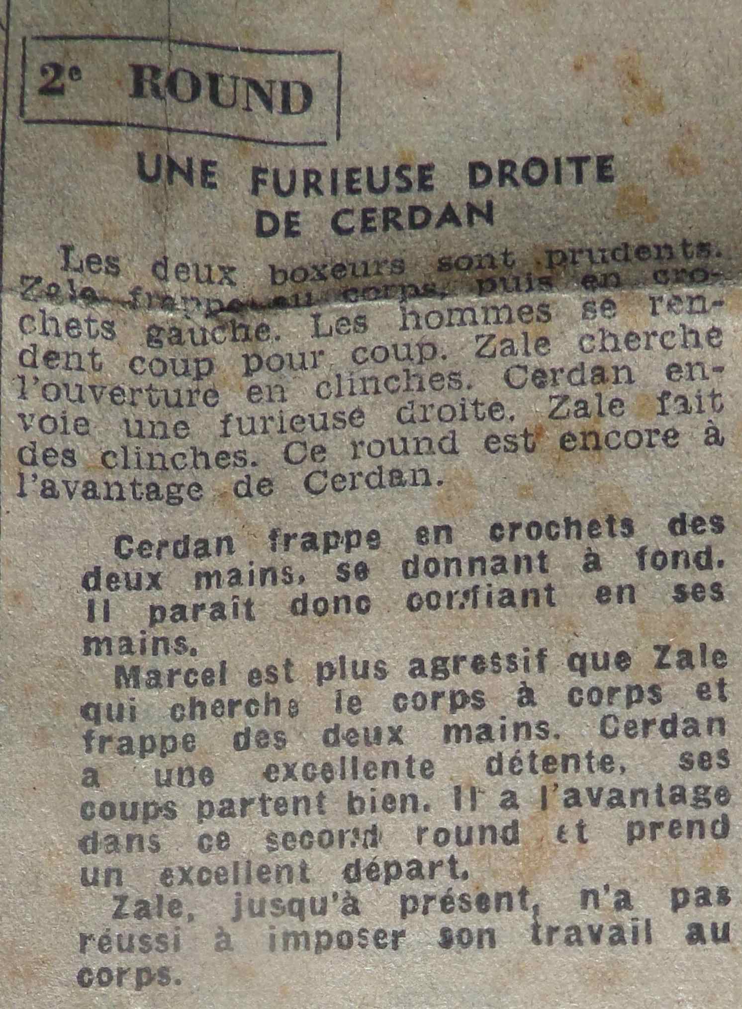 Et l’on peut lire le combat round par round, du 1er au 11ème puisque Cerdan le gagna avant la limite, sur KO.