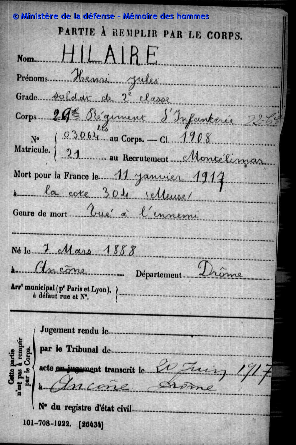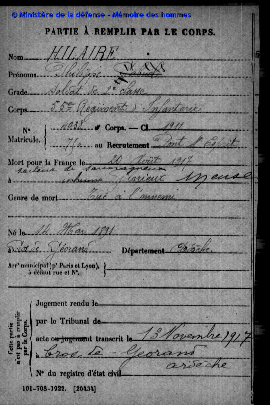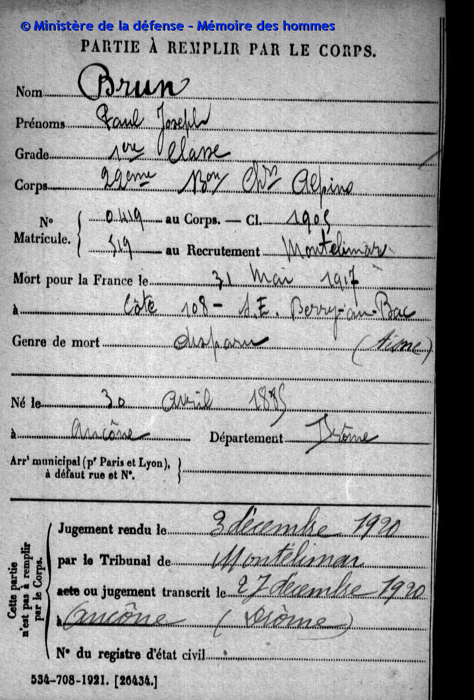 Quant à Paul Joseph Brun et Adrien Hilaire, leurs restes n’ont pas été retrouvés et leurs fiches portent la mention « disparu »…