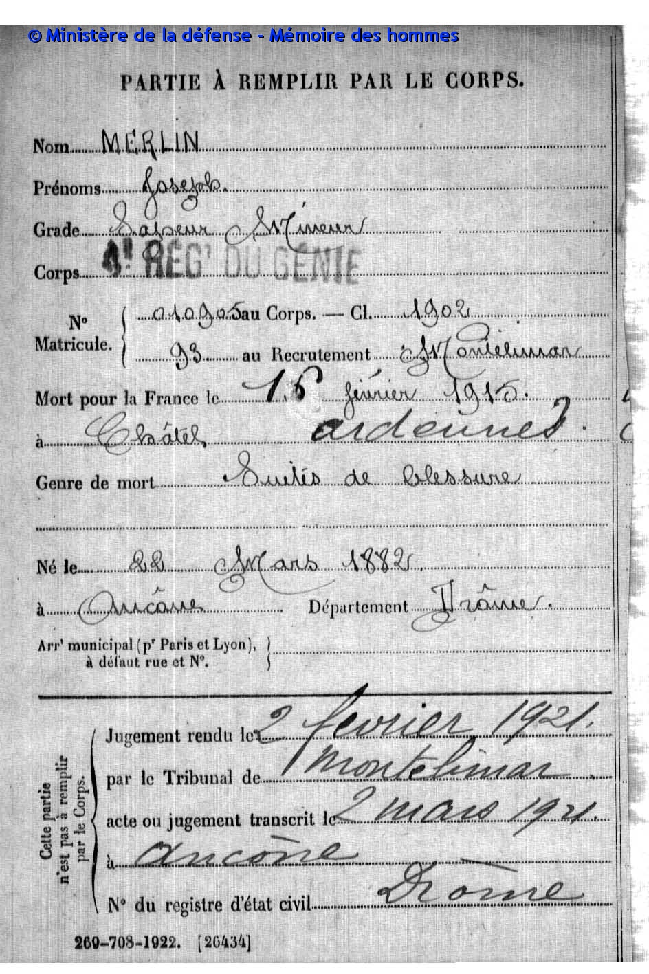 Gabriel Gourjon et Joseph Merlin ont tout deux servi comme Marcel Quézel-Crasaz dans le Génie, leurs fiches ayant été rédigées par le même scribe.