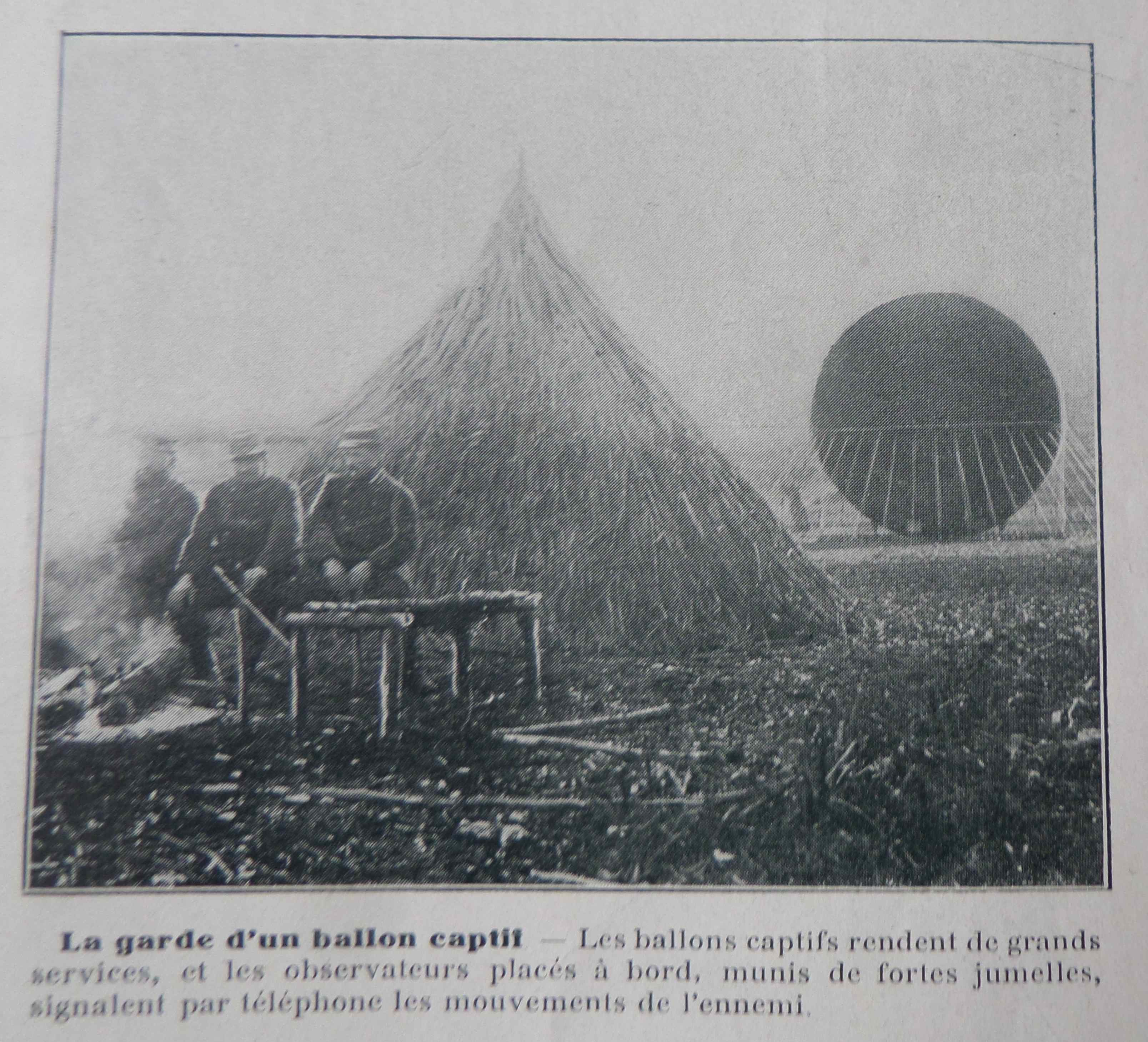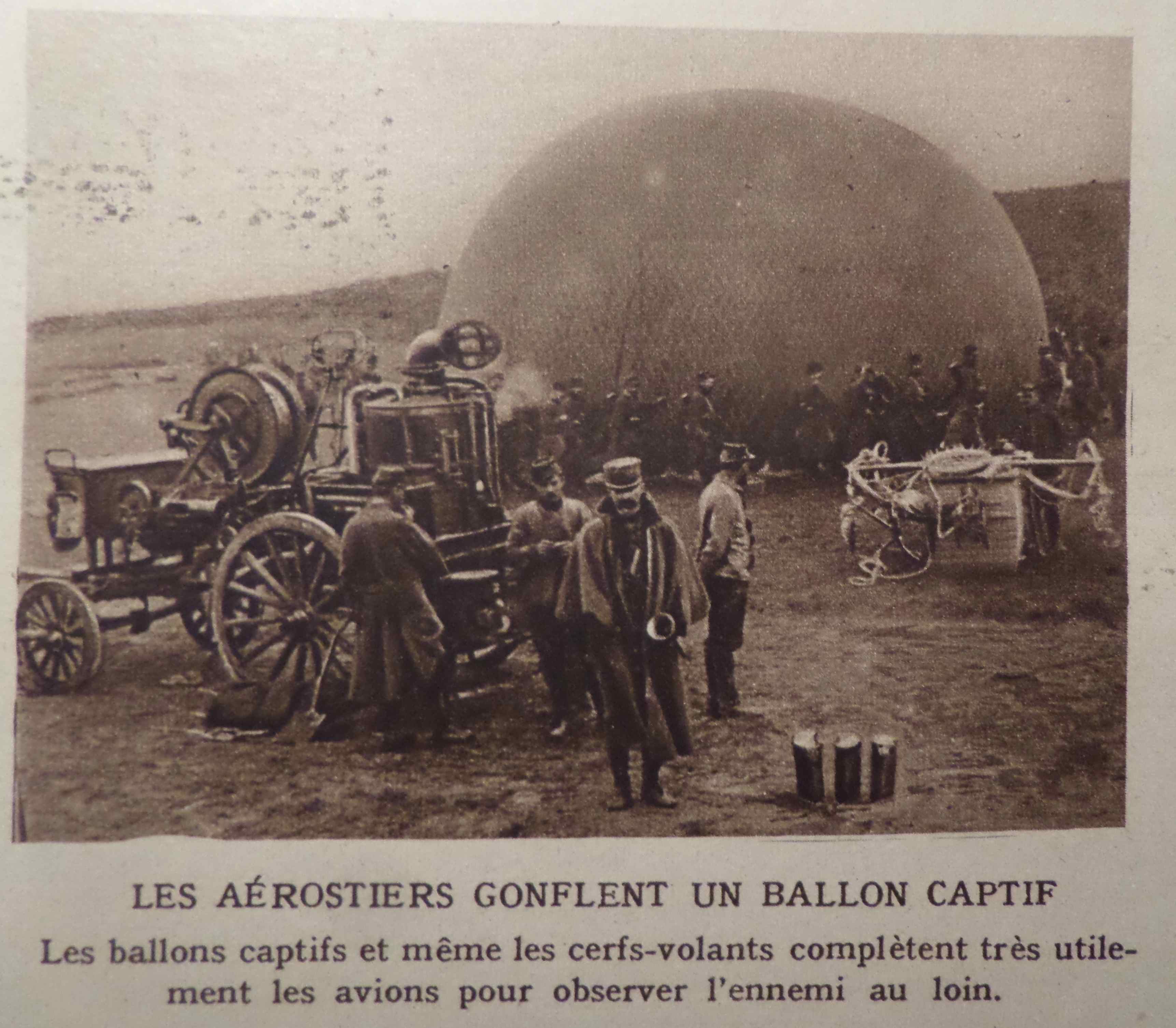 L’envol d’un ballon captif d’observation avec les lourds véhicules pour le gonflage et pour le câble retenant le ballon.