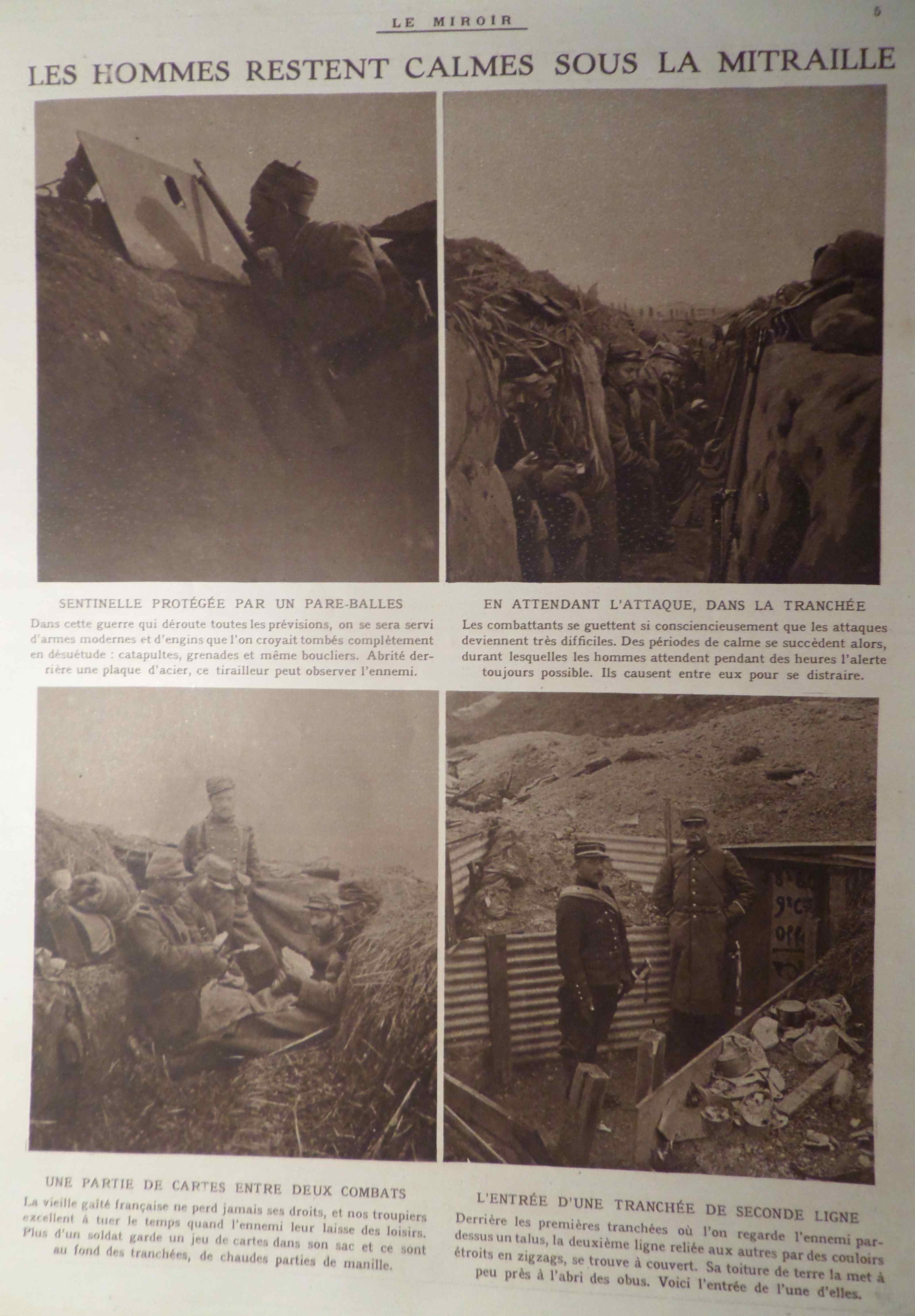 Contrairement au titre du journal TOUT POUR LA PHOTOGRAPHIE, la double page centrale est consacrée à un tableau de Max Théron: AUX ARMES réalisé en octobre 1914 mais dont la scène sublime la déclaration de guerre en août 14. Il faut ajouter que les éditeurs vendent la reproduction de ce tableau au public au format 50×65 pour être mis sous verre pour la modique somme de 50 centimes, frais de port compris.