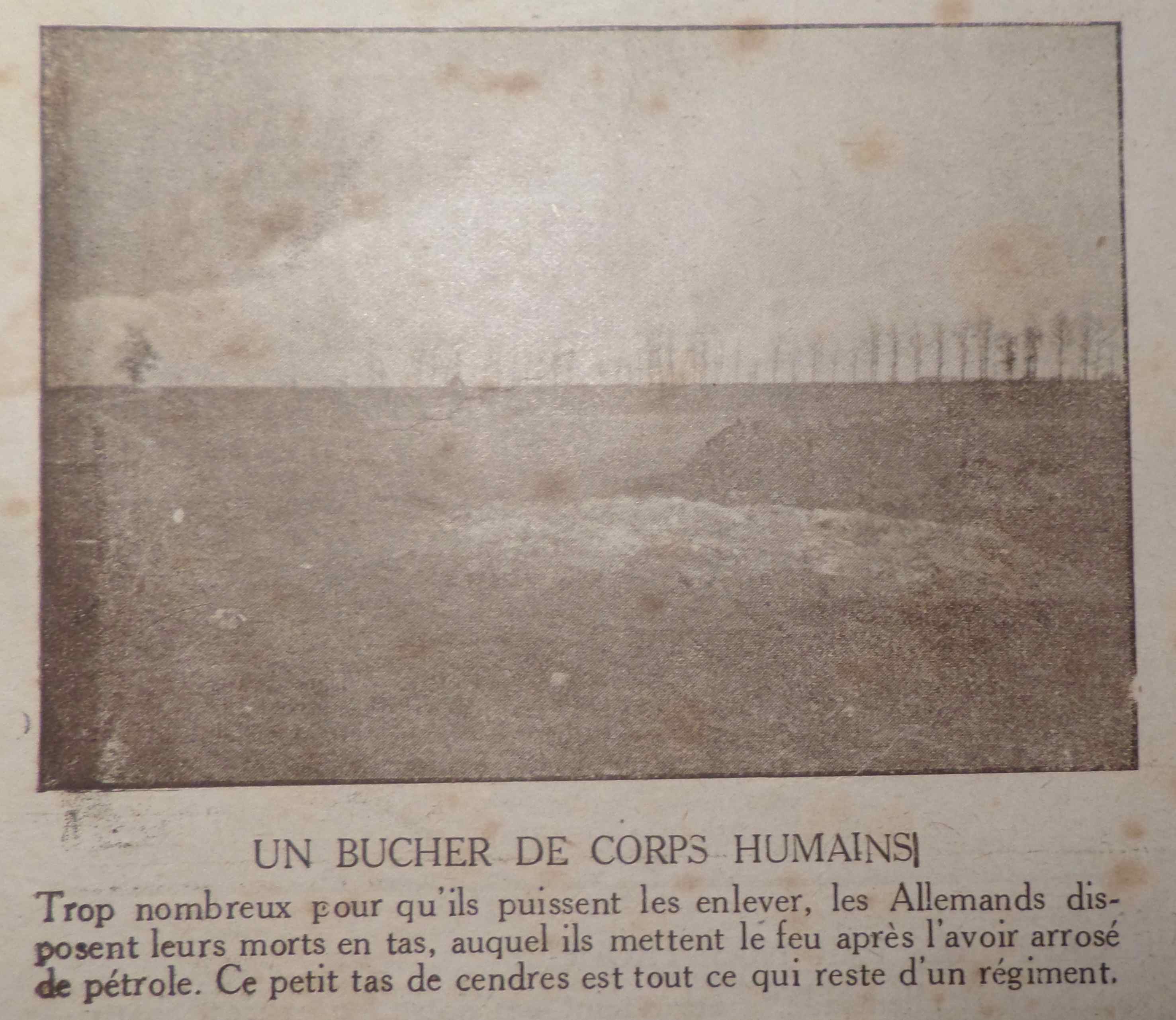 Suivant le texte, les Allemands avaient tellement de morts qu’ils faisaient de grands buchers de ceux-ci.