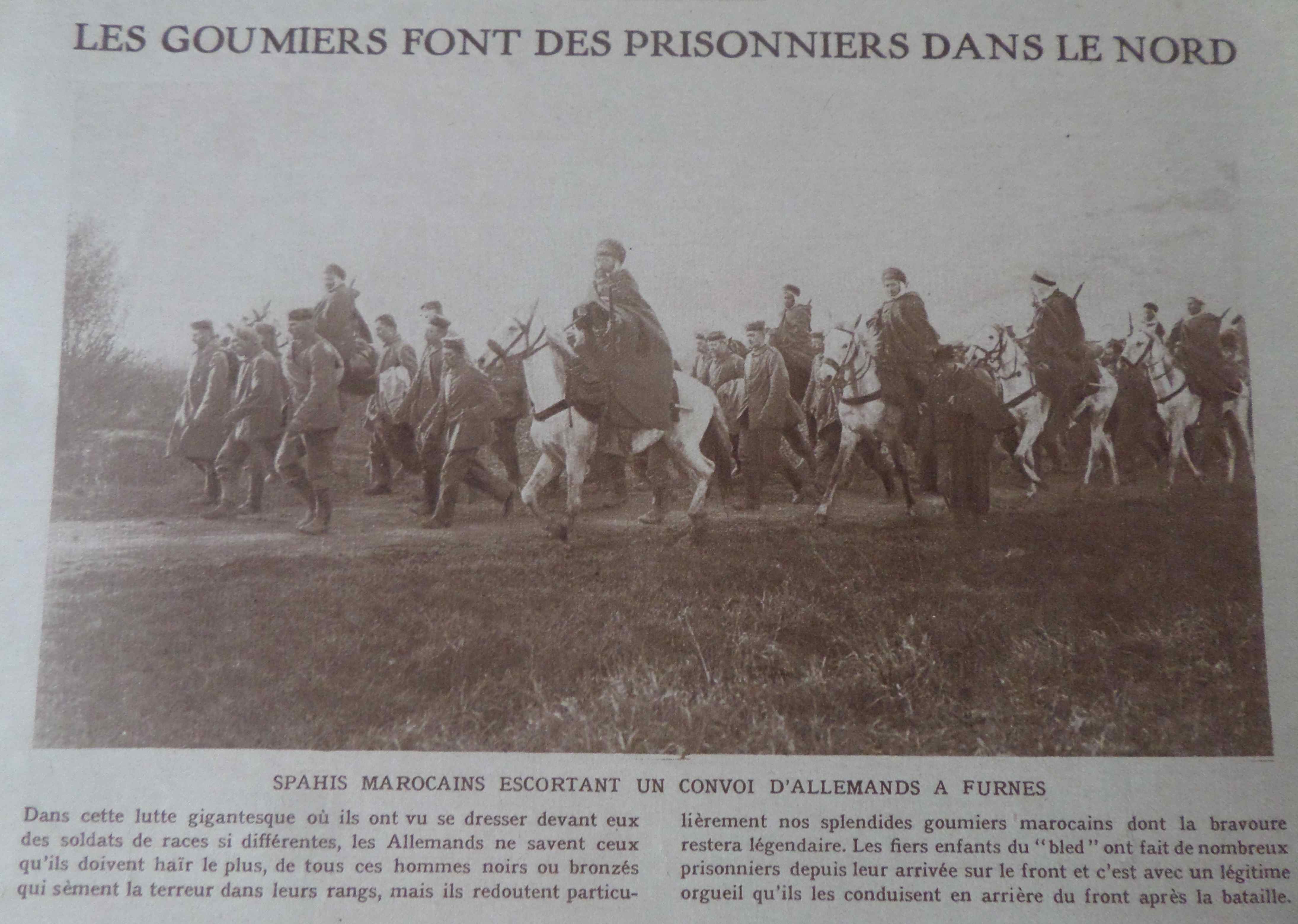 les spahis marocains escortent des prisonniers allemands dans le Nord
