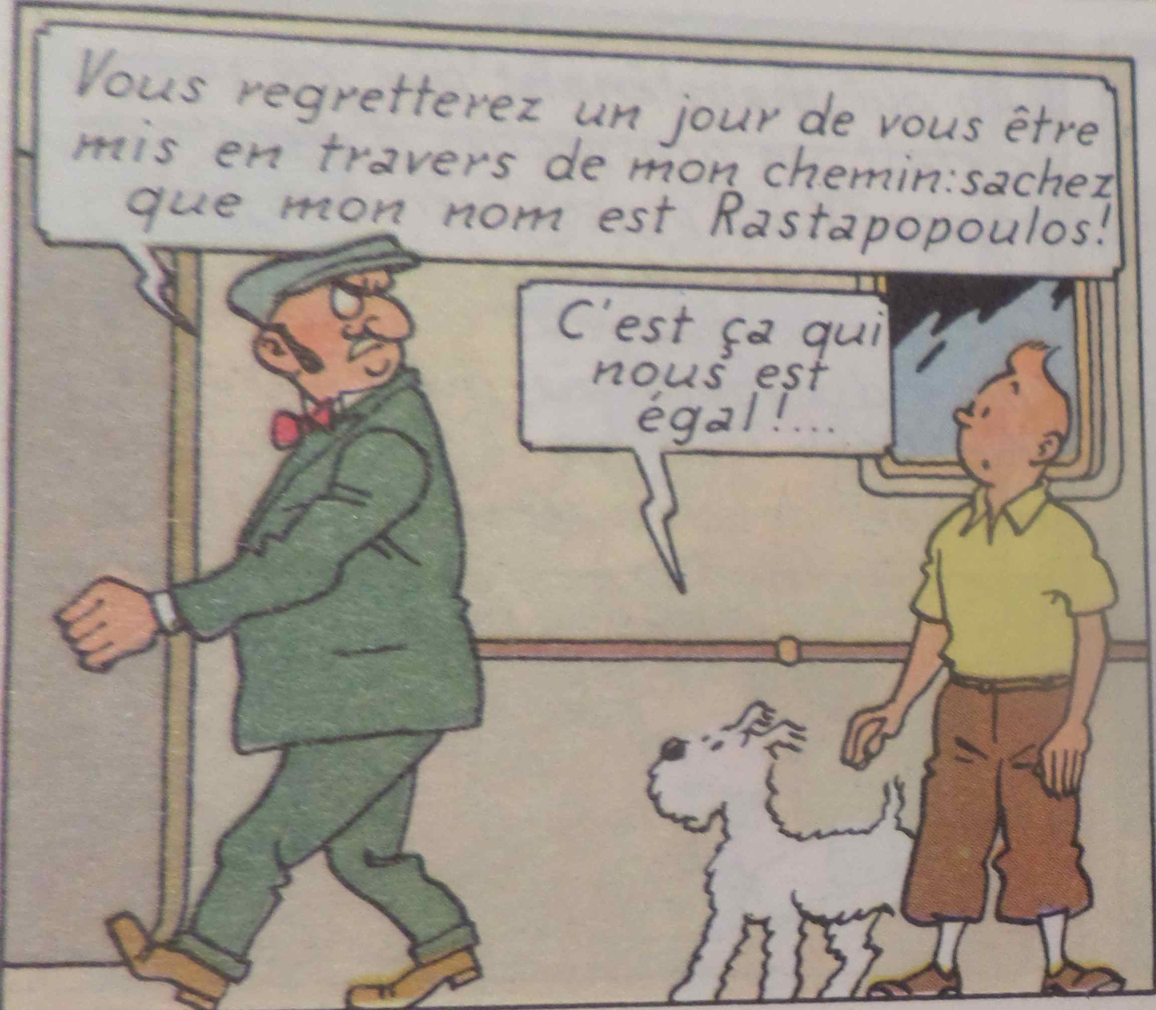 Le nom de l’auteur est bien entendu déguisé car les ayant-droits d’Hergé attaquent systématiquement en justice tous ceux qui utilisent sans autorisation la marque Tintin.
