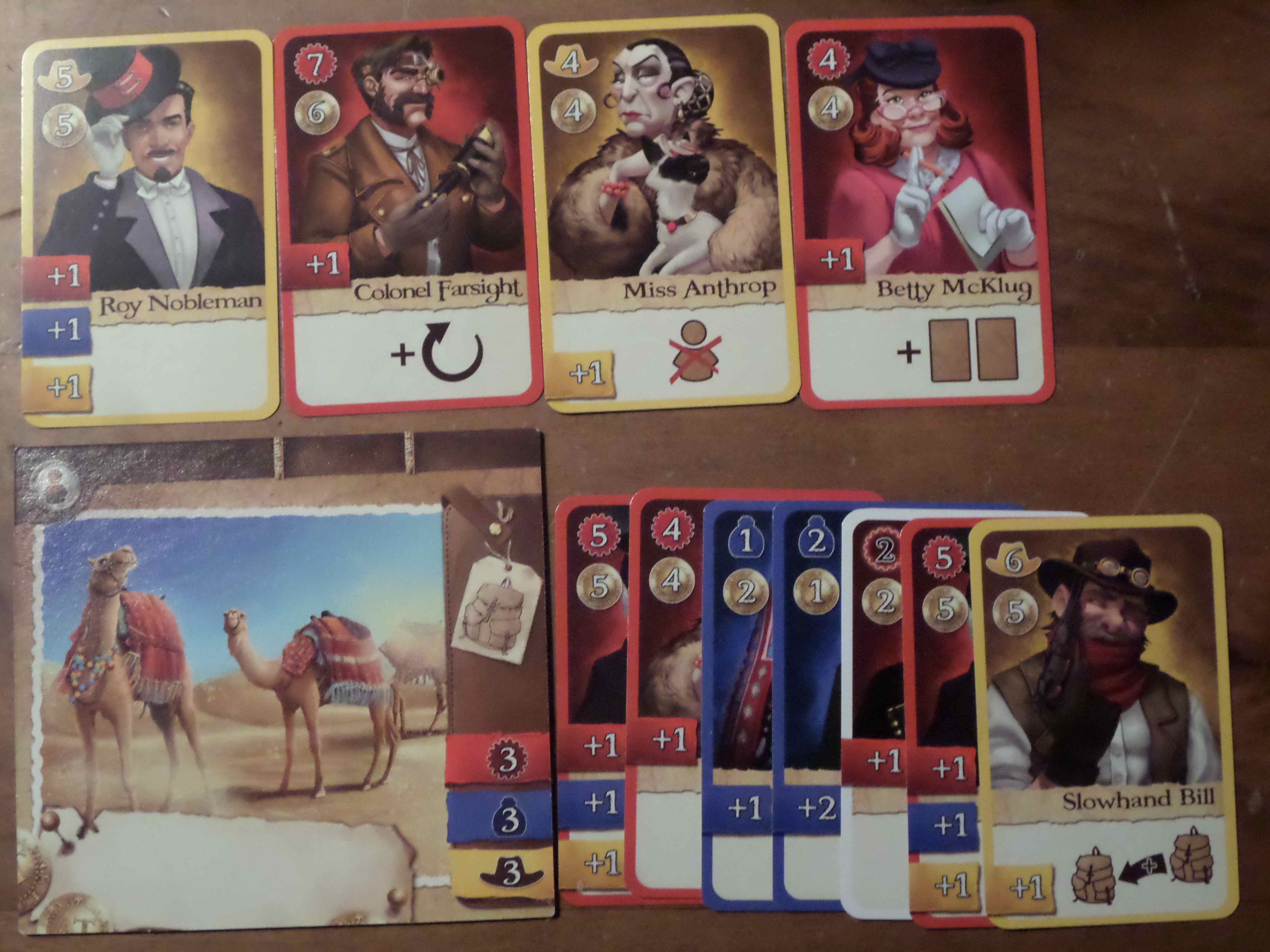 qui exigeaient seulement 5 ou 4 en vêtements pour Roy Nobleman et Miss Anthrop, 7 ou 4 en techniques pour le Colonel Farsight et Betty McKlug. De plus quand le joueur avait posé le Colonel Farsight, il avait pu rejouer un autre tour, quand il avait posé Miss Anthrop, il avait pu enlever un aventurier d’un adversaire, quand il avait posé Betty McKlug, il avait pu prendre 2 cartes pour lui ou pour d’autres joueurs… d’où l’interactivité des parties où jamais rien n’est acquis. Des actions permettent même de faire passer des cartes équipements en cartes aventuriers !