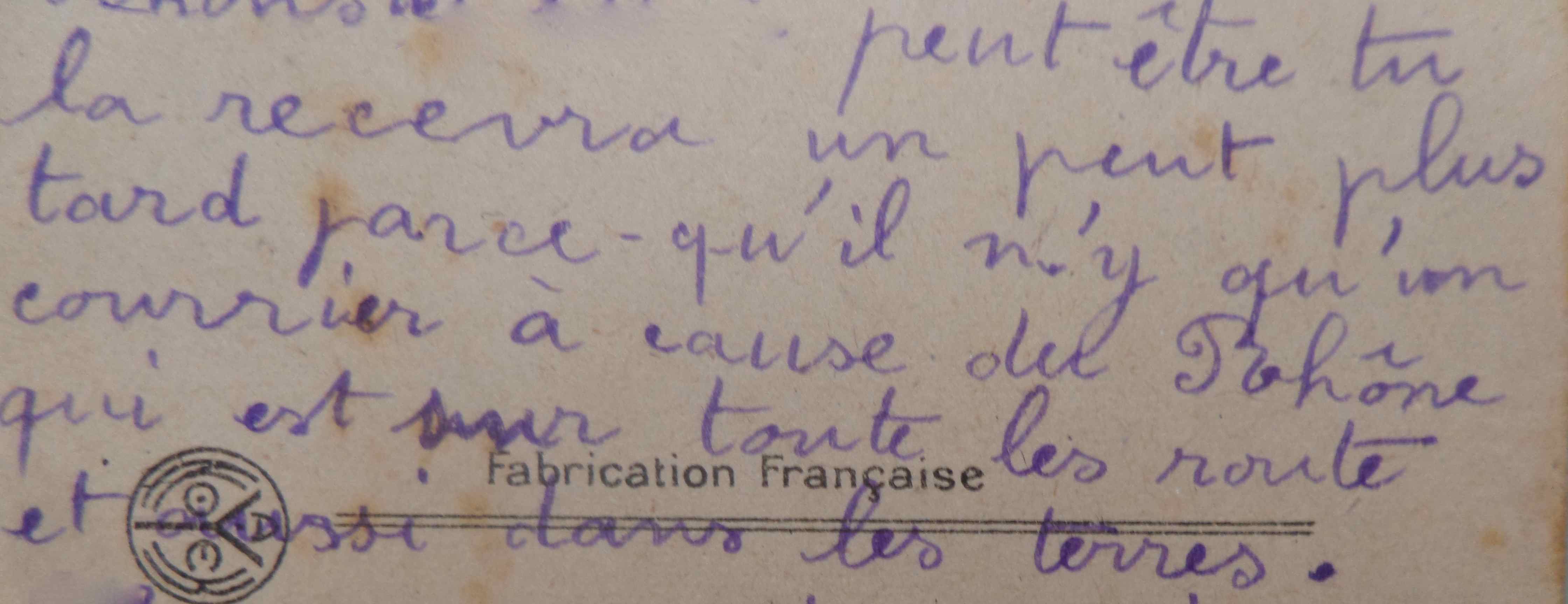 un trop-plein d’eau avec une inondation qui recouvre routes et champs… si bien que la carte risque d’être retardée. On peut donc penser qu’il s’agit de la crue de fin-décembre 1918 signalée sur le site internet de la CNR. Séraphin n’a pas encore été libéré par l’armée, il s’en faut de beaucoup.