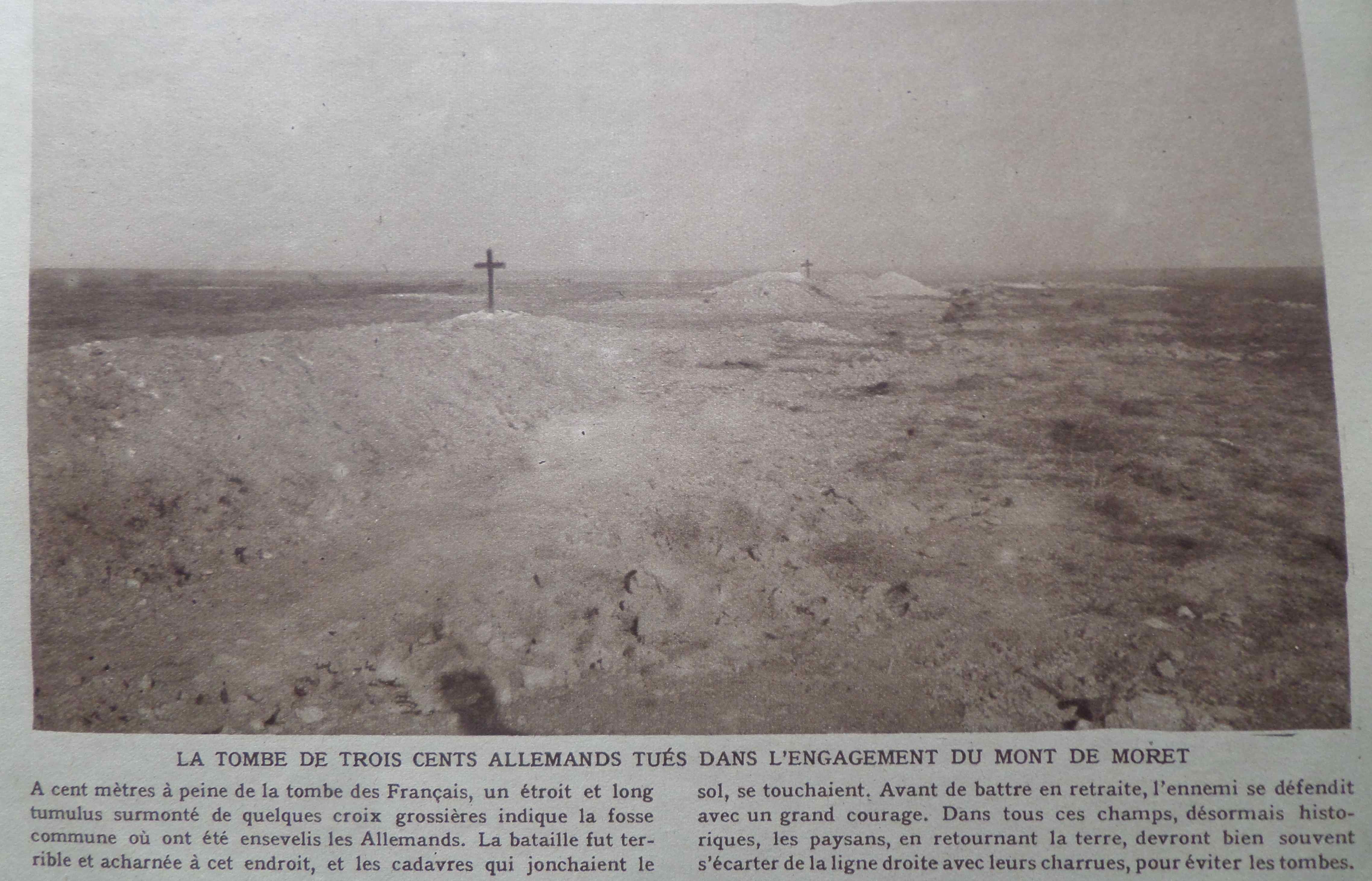 Dans le même domaine, sur le front de la Marne, au Mont de Moret, après la bataille, les cimetières français et allemands sont proches.