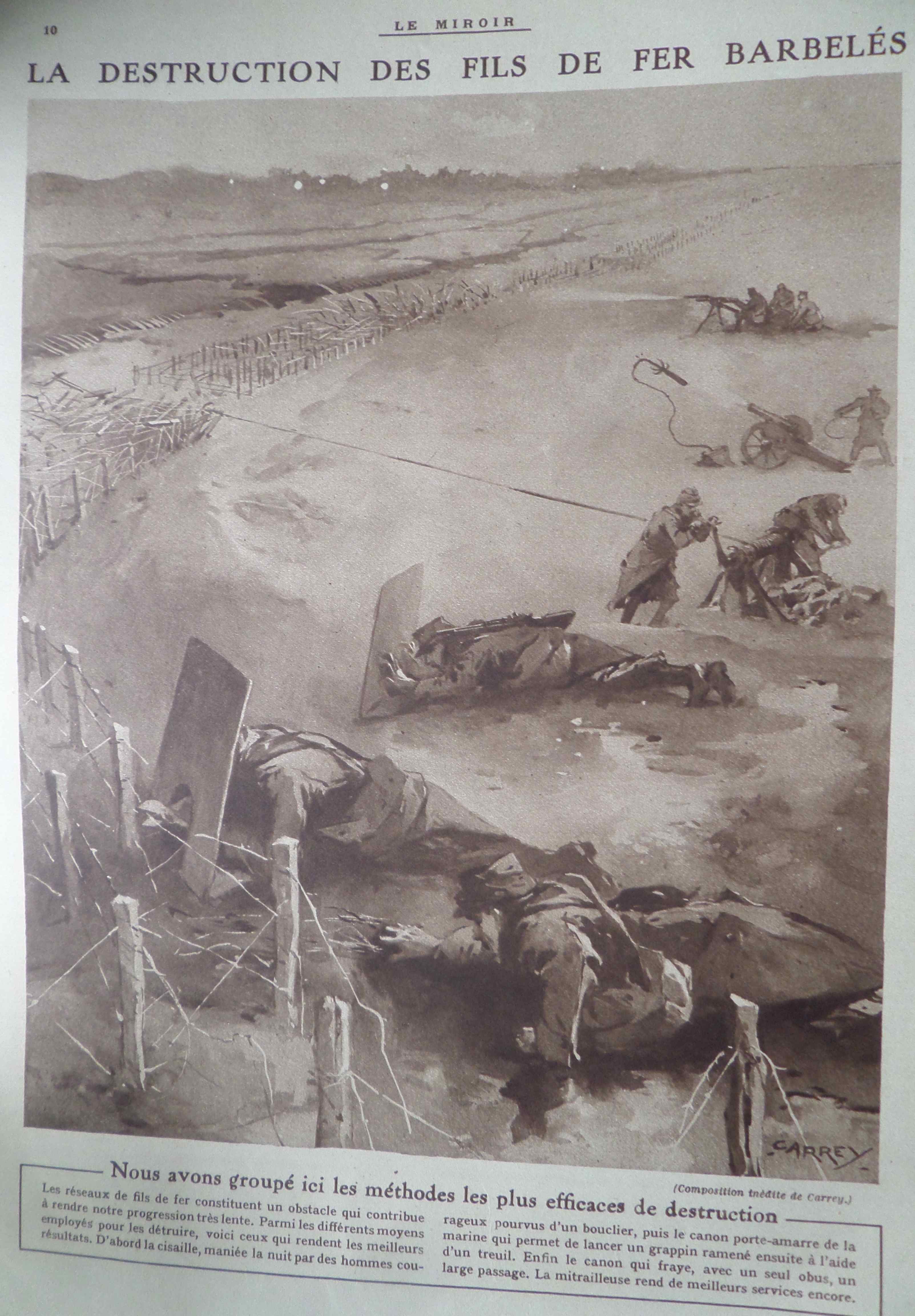 Pour des scènes où la photo est impossible, c’est au dessinateur Carrey que Le Miroir fait appel. Le bouclier avec cisailles pour couper les barbelés de nuit…