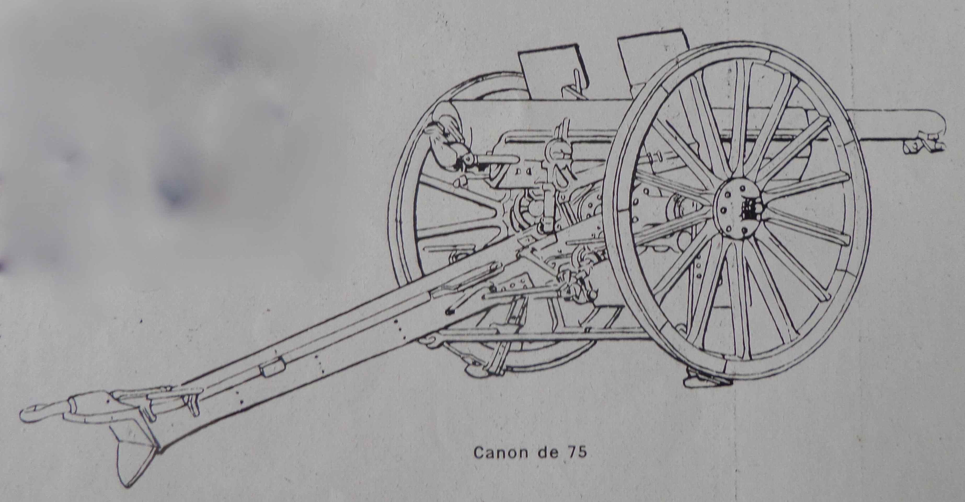 le canon de 75, le plus utilisé pour l’artillerie de campagne. Peut tirer 20 coups/minutes jusqu’à 8km.