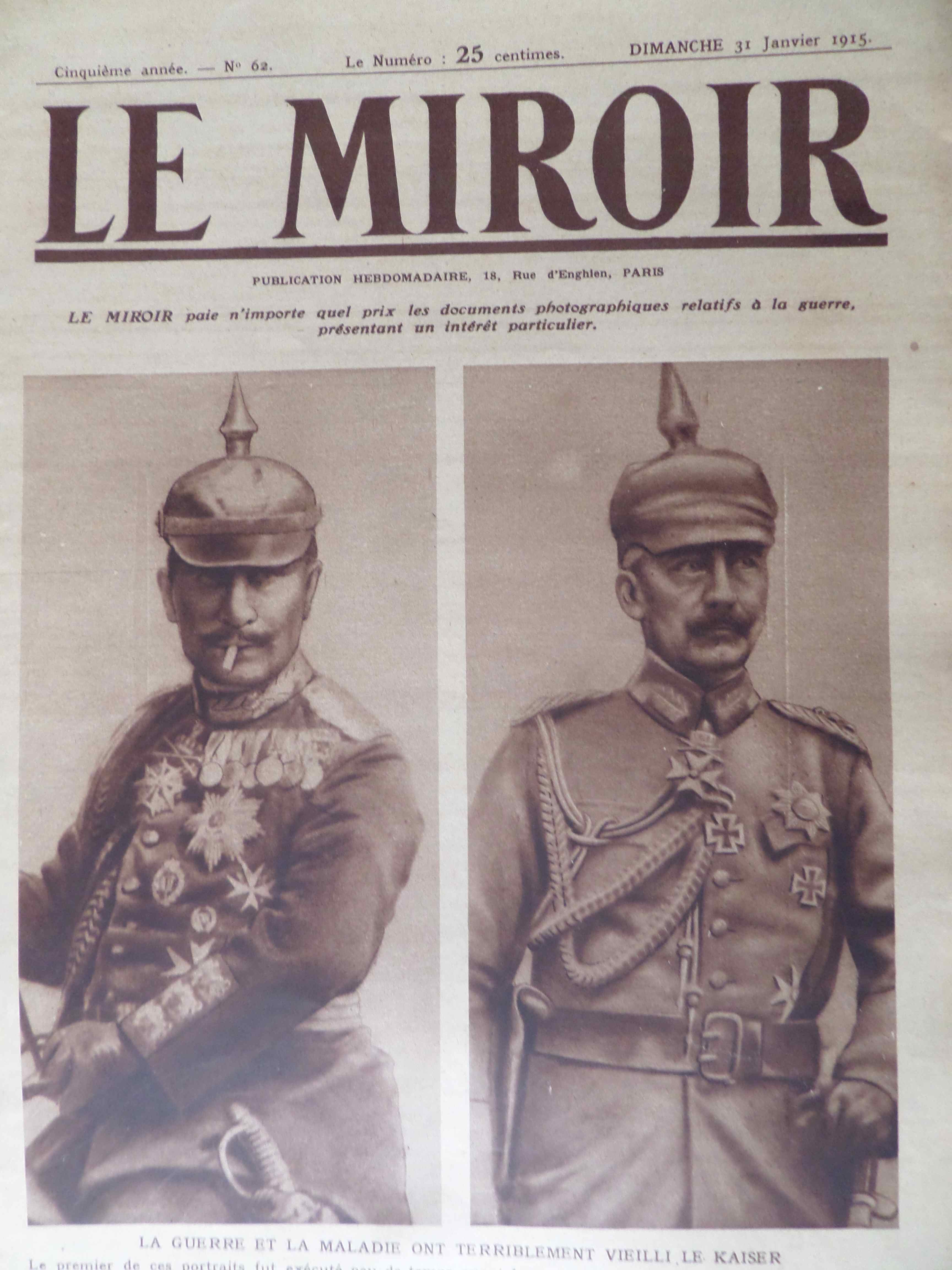 Deux photos du Kaiser voulant nous prouver que les soucis de cette guerre l’ont vieilli et affaibli. Guère convaincant !