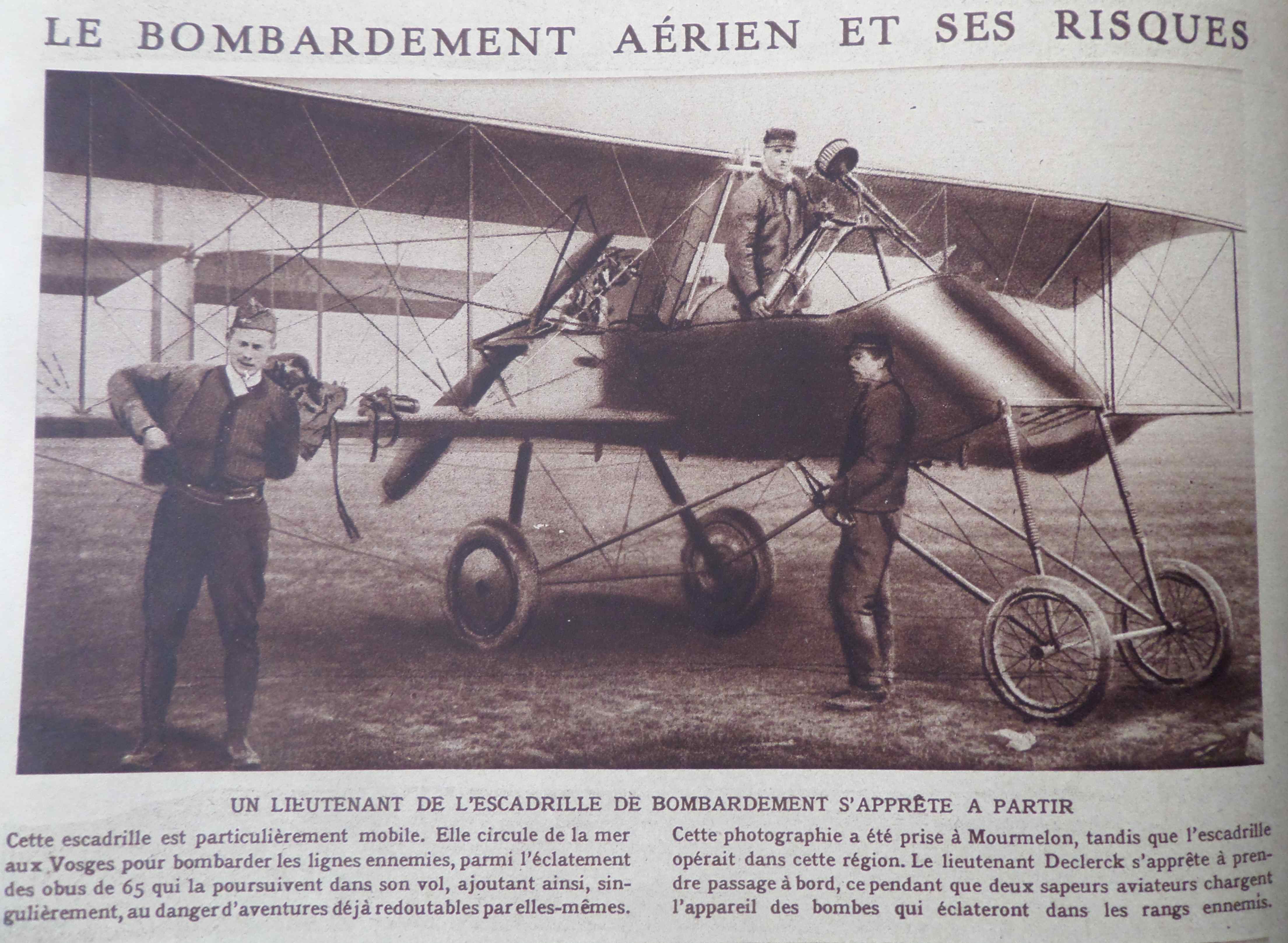 A Mourmelon, l’aviateur Declerck s’apprête à décoller pour bombarder les lignes ennemies tandis qu’au camp de Châlons repose un chevalier du ciel tué à l’ennemi: Louis Mendès. Ce dernier s’était posé par erreur derrière les lignes allemandes le 3 septembre 1914 et il fut abattu par un détachement de Ulhans au moment où il brûlait son aéroplane.