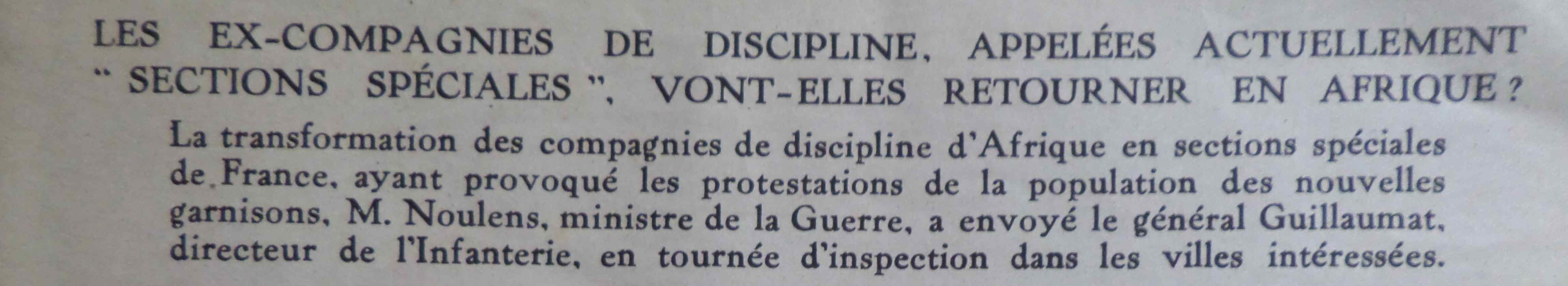 Jadis existaient 4 unités disciplinaires en Afrique du Nord: à Gafsa en Tunisie, à Biskra près de Constantine, à Méchérian près d’Oran et à Aumale au sud d’Alger. La discipline y était dure et avait déjà été humanisée, l’article citant des pratiques anciennes comme celle du silo qui consistait à faire creuser un trou dans le sable sous le soleil de plomb pour y faire descendre l’homme puni ou la crapaudine, barre de fer où le disciplinaire avait les pieds et les mains attachées.