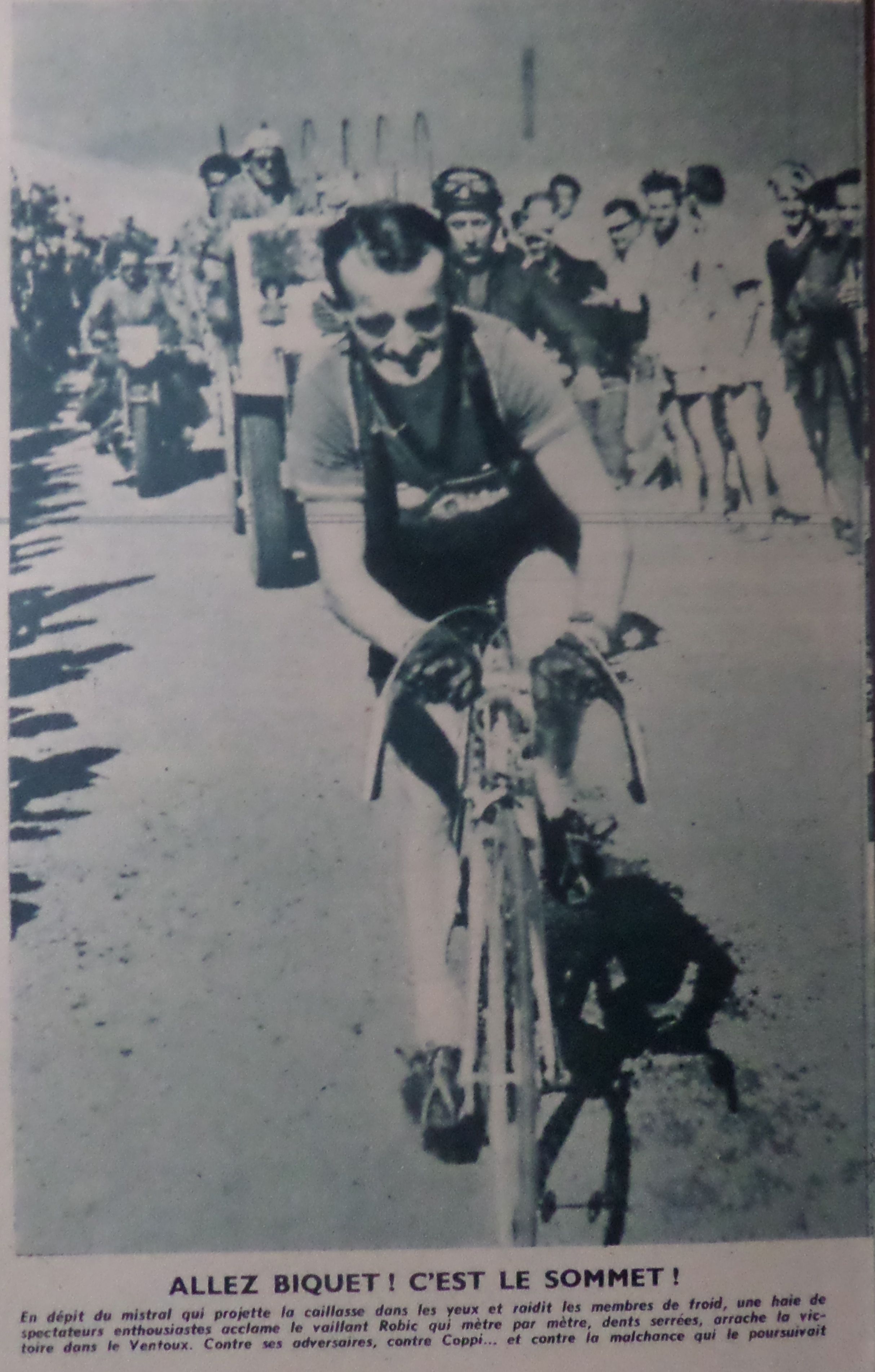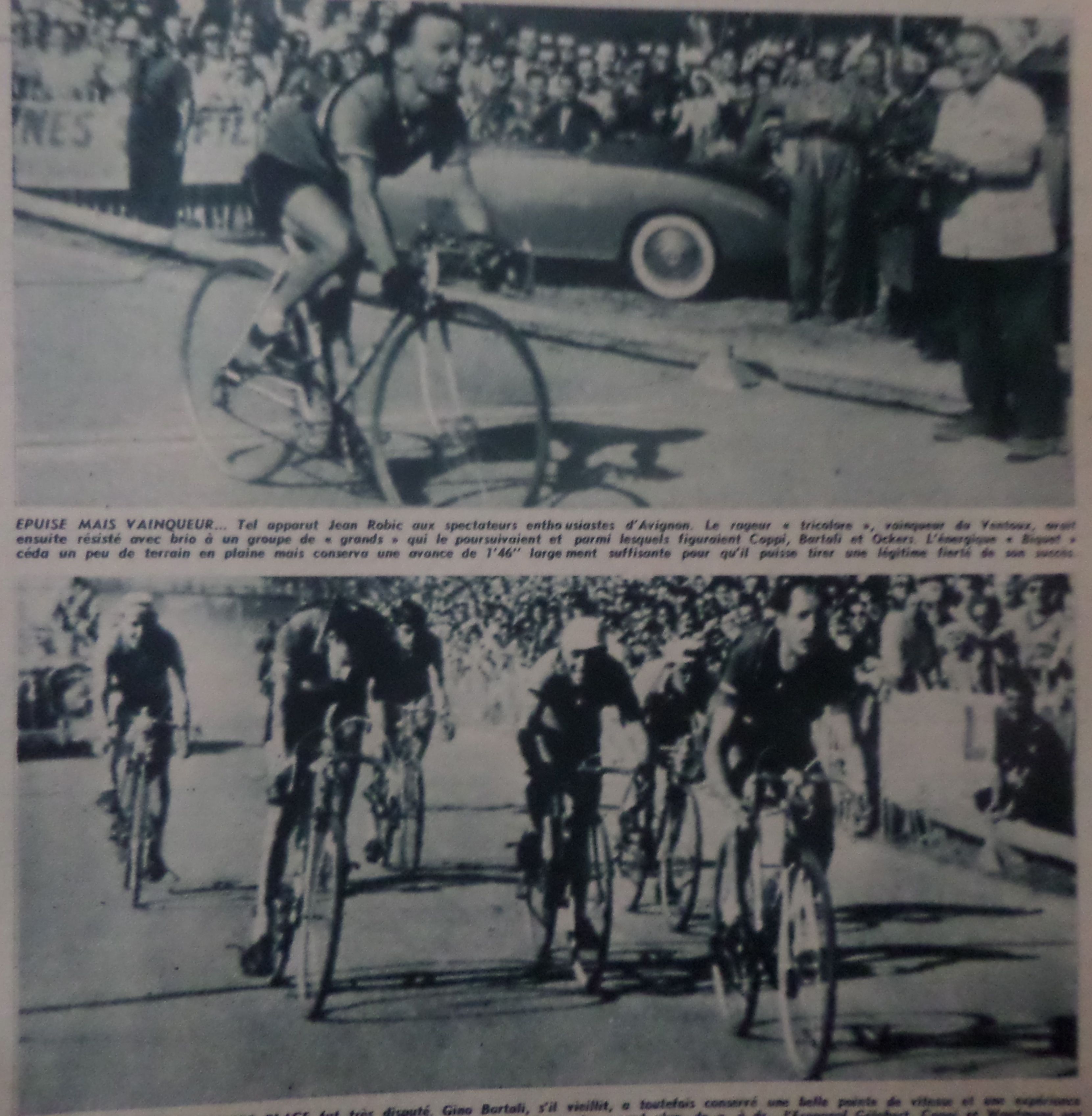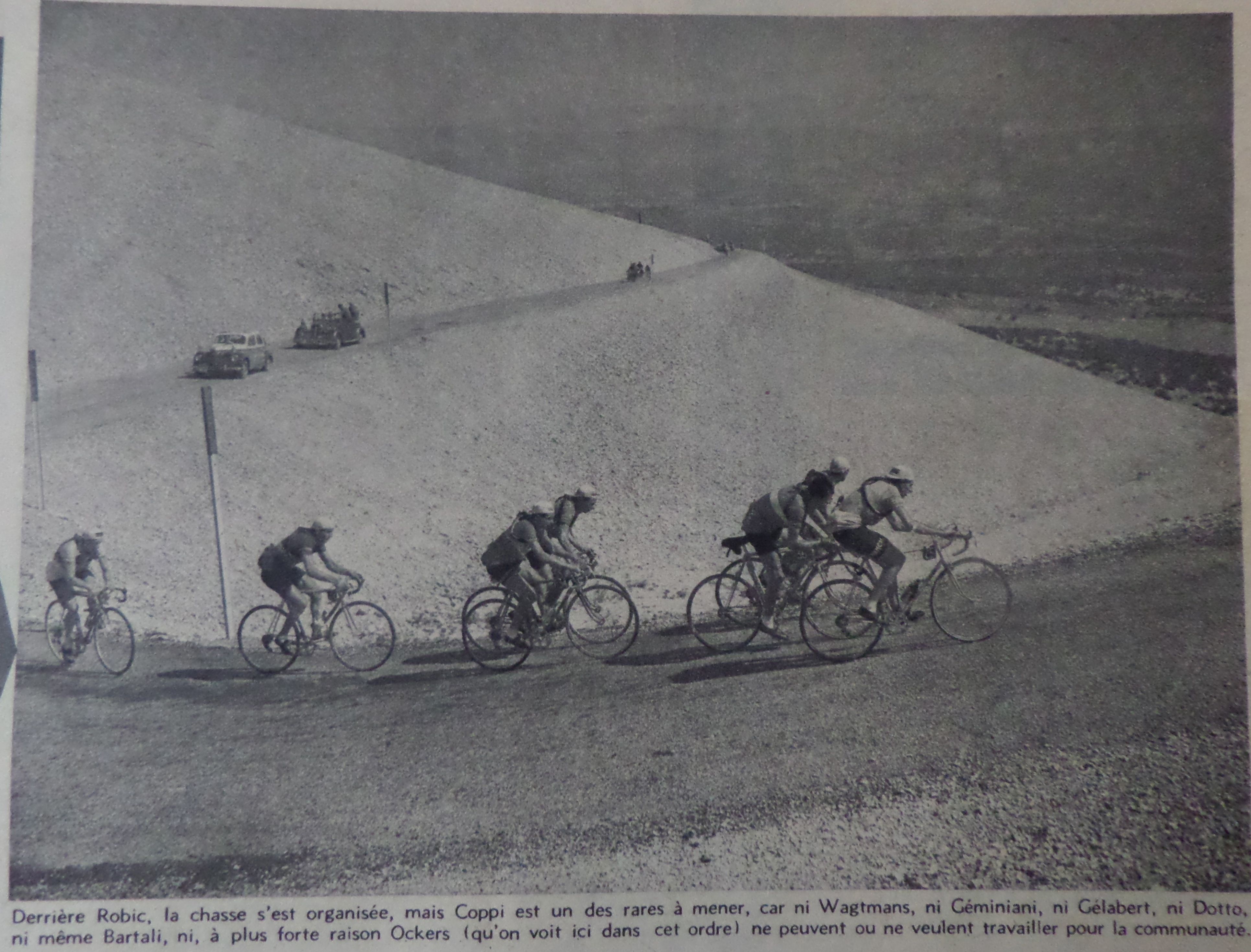 vent qui devenait un allié une fois le sommet franchi pour rejoindre Avignon, surtout pour un petit gabarit comme Robic. Ce mistral joua un rôle important car Fausto Coppi, à la relance après une crevaison…