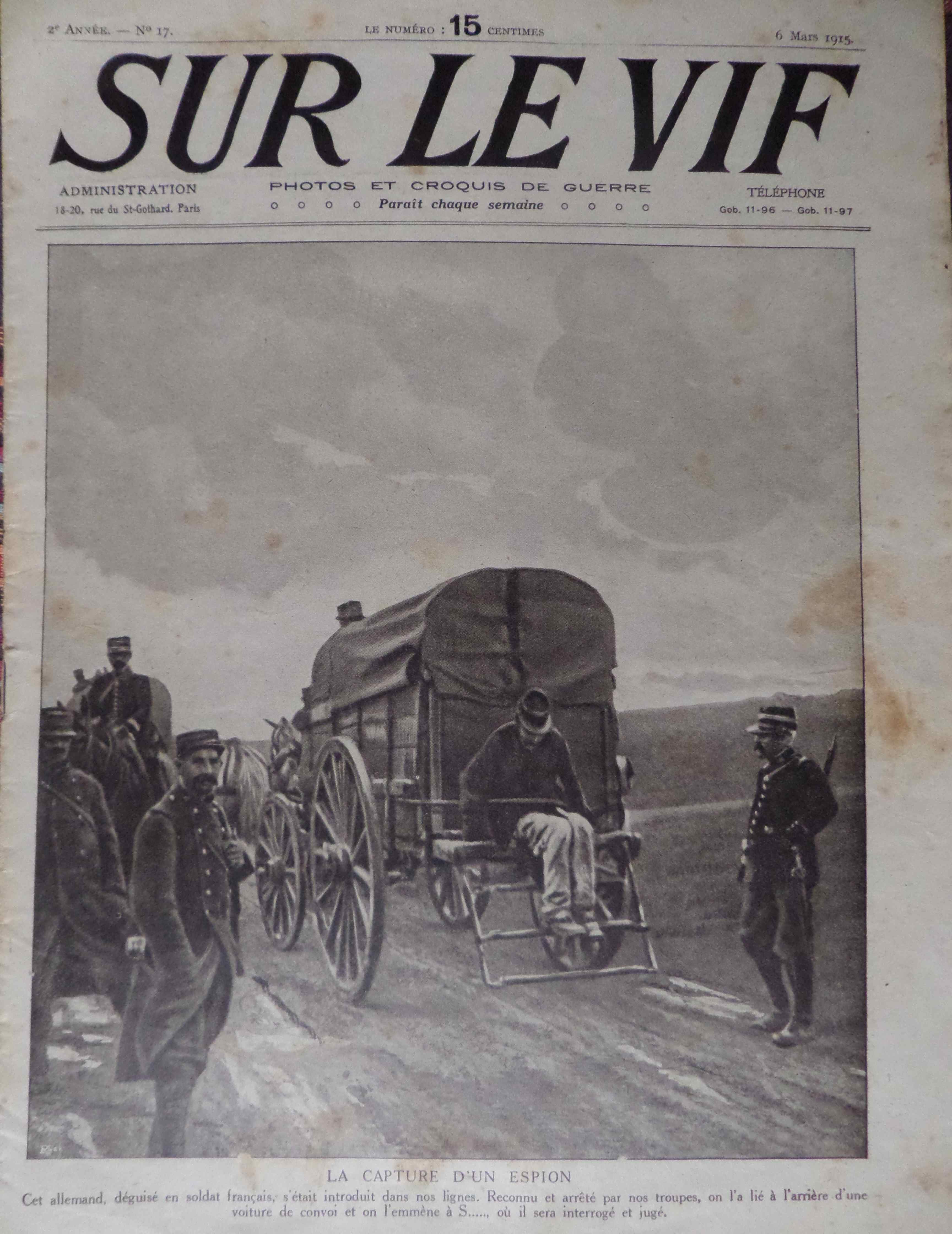 Un espion ligoté emmené vers l’arrière pour interrogatoire puis jugement. Une scène qui « fait » un peu western. Pour donner plus de crédibilité à cette photo, en seconde de couverture, on voit un dessin réalisé par un espion avec de nombreux renseignements stratégiques.