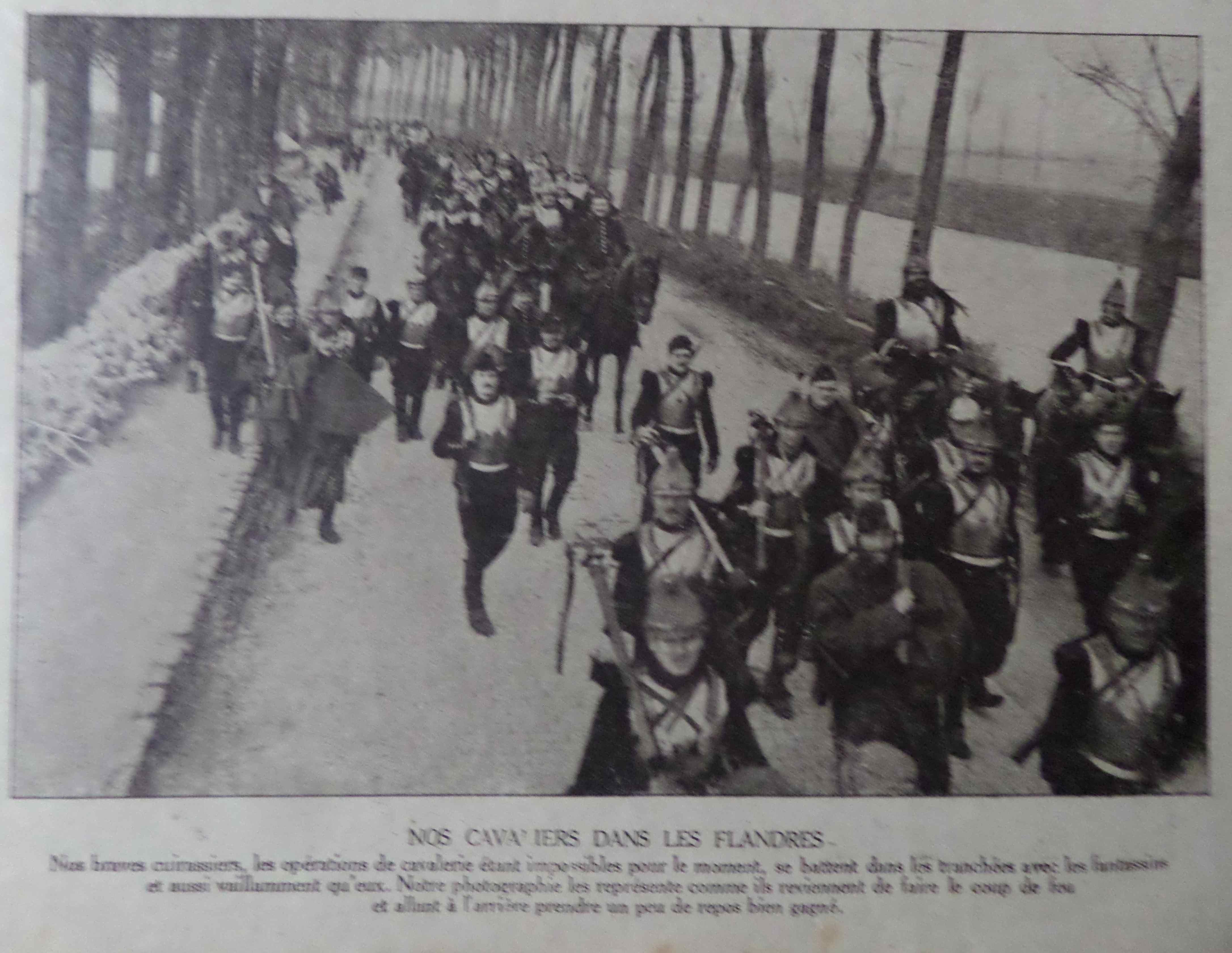 Un photo originale de cuirassiers s’en retournant du front où ils ont combattu, à pied… la guerre à cheval étant impossible à ce moment-là. A cause du climat ?