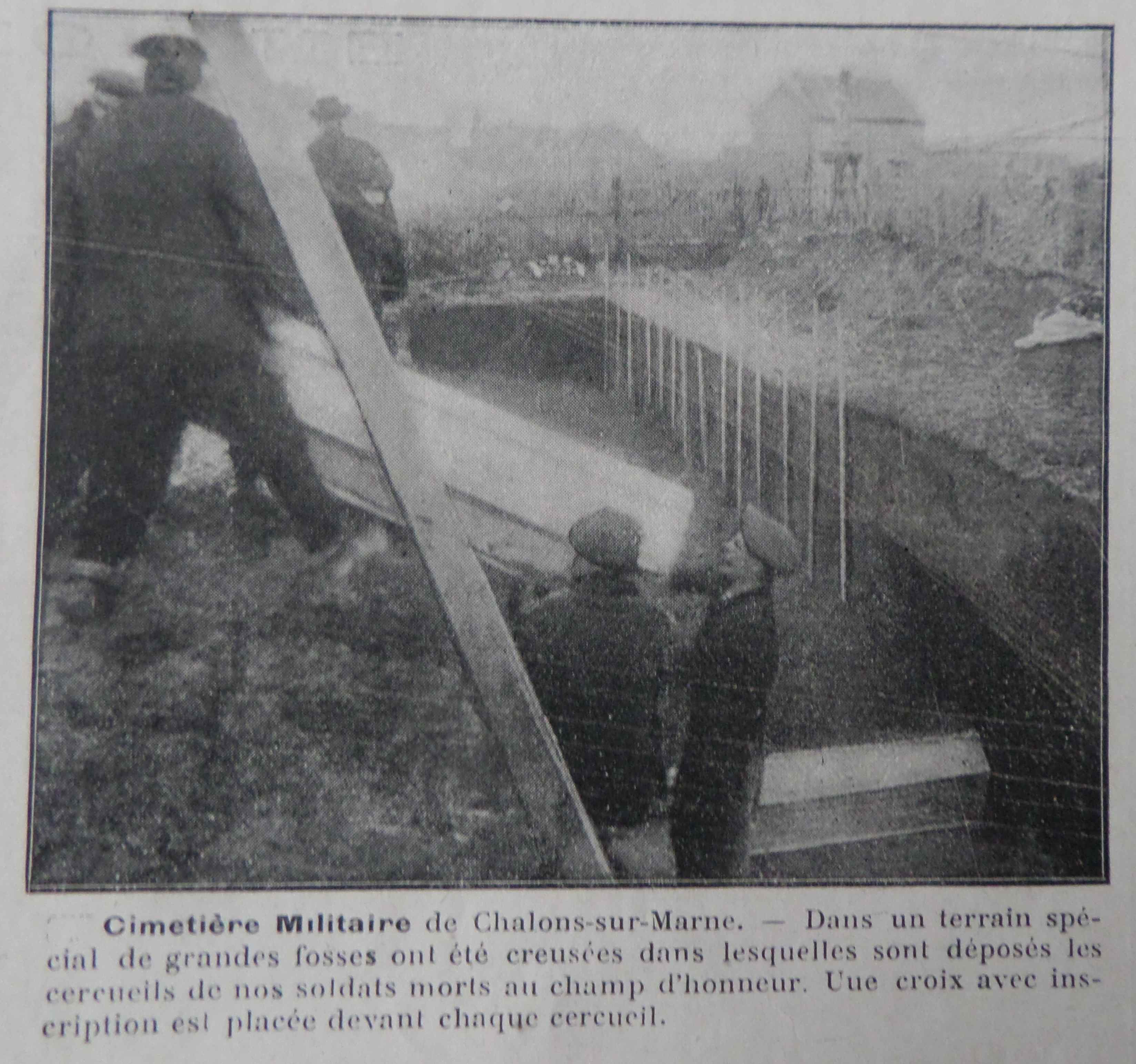 Pour en rester aux cimetières qu’on ose montrer la mort, maintenant même s’il ne s’agit pas d’Allemands, une fosse à Chalons-en-Champagne et les cercueils qui arrivent…